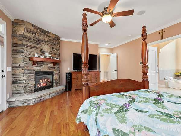 - Ceilings-Cathedral/Raised, Fireplace, Jetted Tub, Multiple Fireplaces, Open Floor Plan, Second Living Quarters