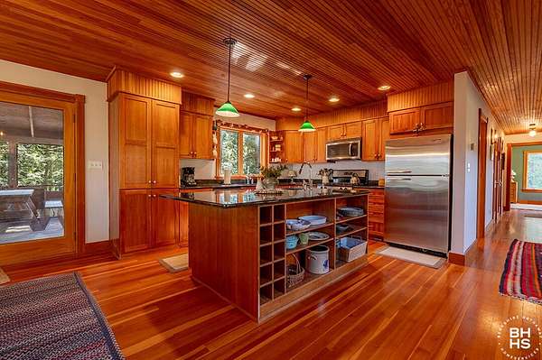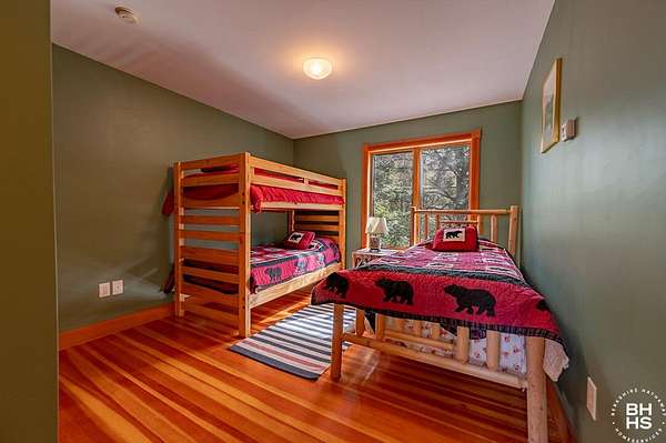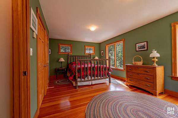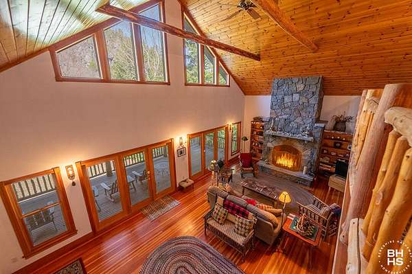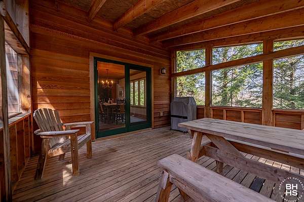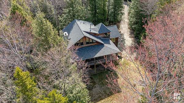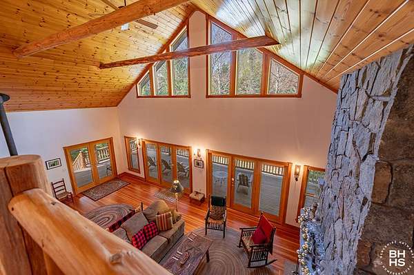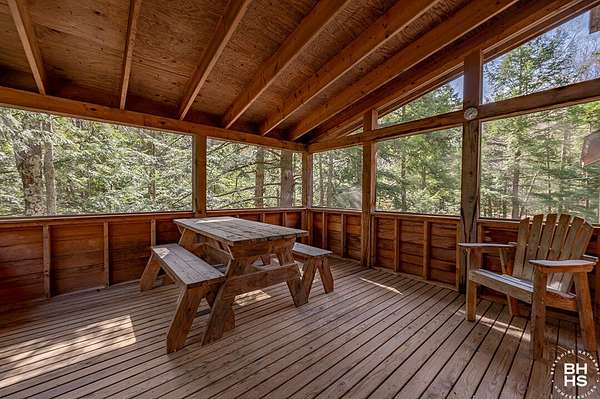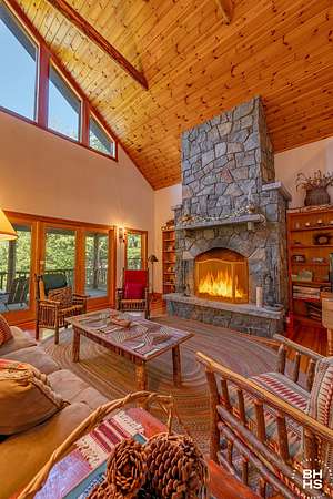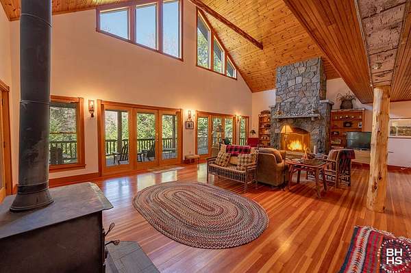 Est $6,658/moA custom built Adirondack style home with 3 living levels and the ground level waiting and ready for additional bedroooms, full bathroom and a den. The great room level is an enormous open floor plan with floor to floor ceiling native granite fireplace, gourmet kitchen, additional wood stove, dining room and screen porch. The primary bedroom and primary bathroom are also on this main level. Private property yet easily accessed year round, 8 wooded acres and Mountain Views with some tree cutting and pruning.