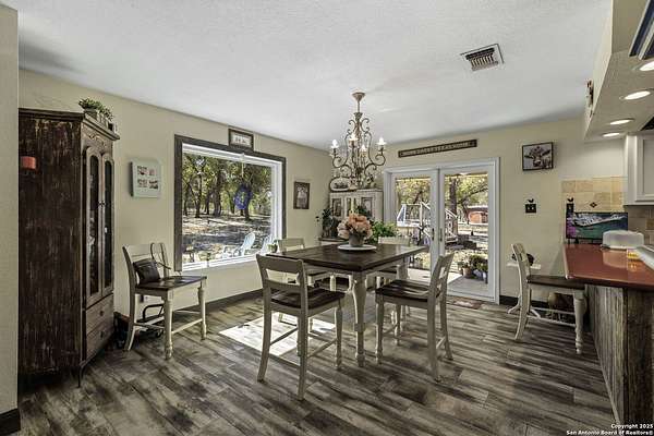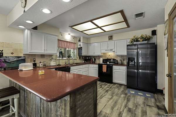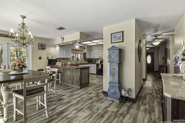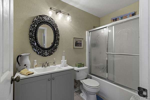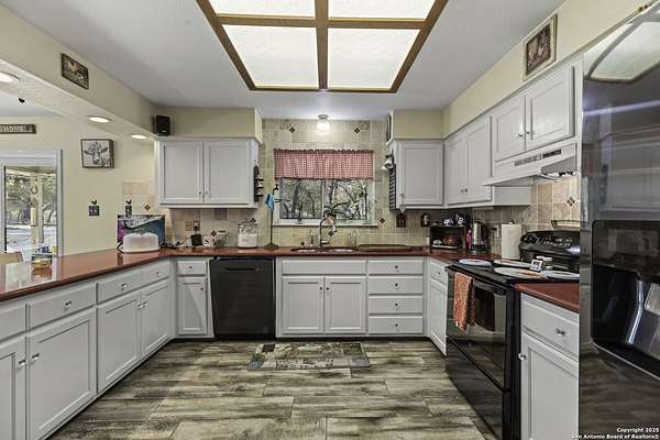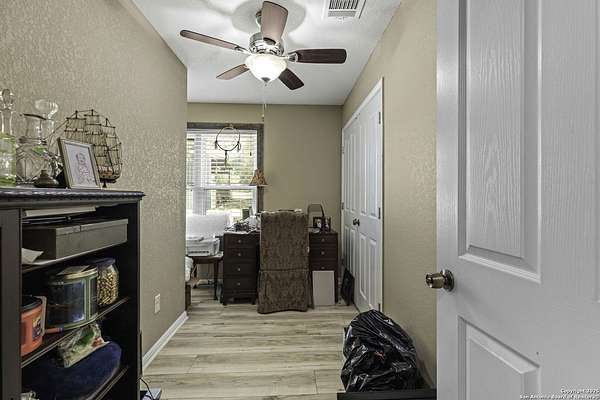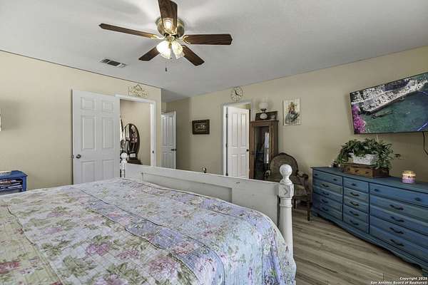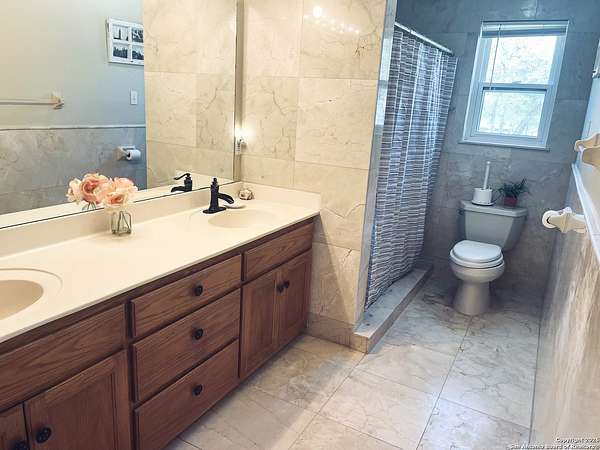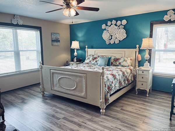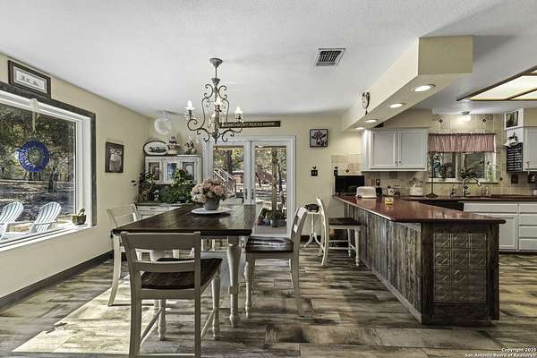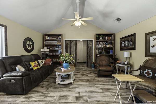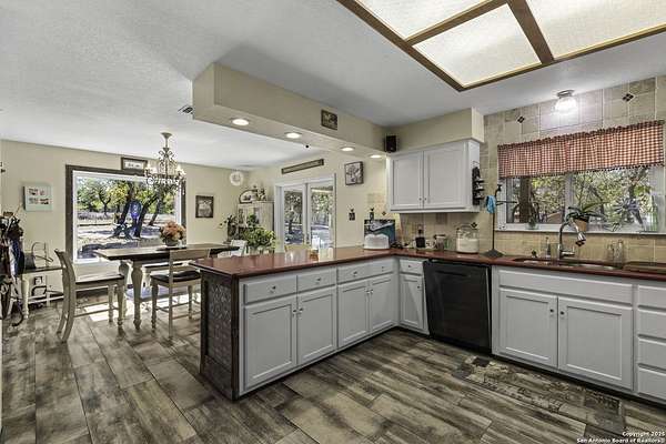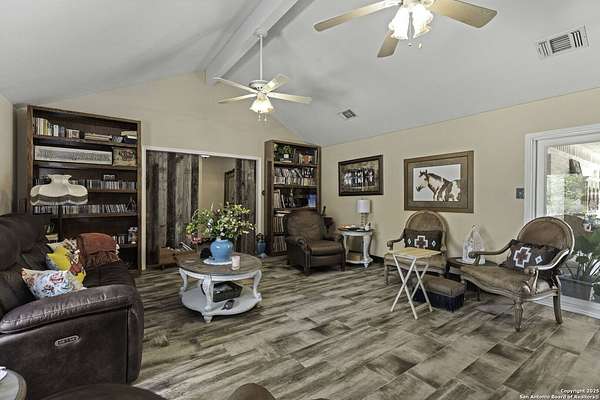 This beautifully updated brick home sits on 3 peaceful acres in Floresville, offering modern comfort with the serenity of country living. The spacious family room features a stunning brick fireplace and flows into a bright, open layout highlighted by elegant porcelain floors and granite countertops. Recent upgrades include a new roof in 2023, energy-efficient windows and doors, and a premium A/C system for year-round comfort. The primary suite has been thoughtfully enhanced, with a portion of the second bedroom converted into an oversized custom closet, creating two true walk-in closets for exceptional storage and functionality. Outside, the property is fully fenced with a private gated entrance, circle drive, and attached garage for easy access. A 14x24 outbuilding provides ample space for a workshop, storage, or hobby area. Mature trees surround the home, offering privacy and a peaceful setting where you can enjoy wide open space and the occasional sight of deer roaming through the yard.