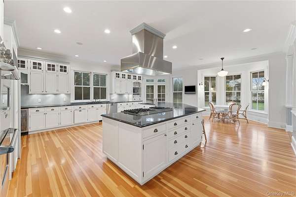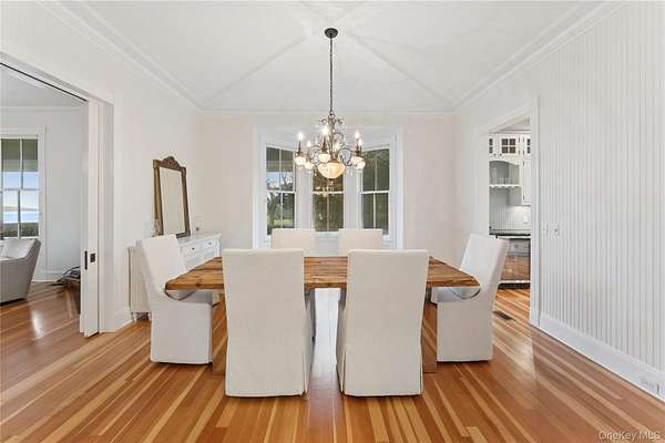 A rare and distinguished waterfront estate in the heart of Center Moriches, this six-bedroom residence seamlessly blends timeless character with an elevated coastal lifestyle. Originally built in the 1890s, the home is rich in old-world charm, showcasing classic architectural details, refined proportions, and a warmth that speaks to its history. Thoughtfully renovated, it has been updated to incorporate all the modern conveniences today's luxury buyer expects, while carefully preserving the integrity and craftsmanship of its era. The result is a residence that feels both elegant and effortlessly livable. The interiors are bright and airy, offering beautifully scaled rooms ideal for both intimate living and gracious entertaining. Every space reflects a balance of historic character and modern refinement, creating a home that is as functional as it is inviting. Outdoors, the estate is designed for true resort-style living. A beautifully appointed pool is complemented by an outdoor bar, creating the perfect setting for summer entertaining. A charming carriage house adds both character and functionality, serving as a garage while also offering a full bathroom and dedicated changing area-ideal for seamless poolside living. Set against a serene waterfront backdrop, the expansive grounds provide privacy and a seamless connection to the coastal landscape, with opportunities for boating, outdoor dining, and relaxed waterfront living. Ideally located, the property enjoys close proximity to Center Moriches' local shops, restaurants, marinas, and beaches, while offering convenient access to the renowned destinations of the Hamptons-bringing world-class dining, ocean beaches, and boutique shopping within easy reach. A truly exceptional offering, this estate captures the romance of a bygone era, enhanced by today's comforts-where history, luxury, and lifestyle come together in perfect harmony.