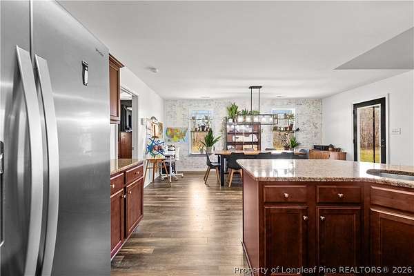 If you've been dreaming of space, privacy, and a slower pace-without sacrificing convenience-this is the one. Imagine starting your mornings with peaceful views, fresh air, and the quiet that only country living can provide. Welcome to tranquil living at its finest! Nestled on 2.90 beautiful acres in Benson, this well-maintained 3-bedroom, 2-bathroom ranch home offers the perfect blend of comfort, space, and privacy. With 1,606 square feet of thoughtfully designed living space, the home features a desirable split-bedroom floor plan, a cozy gas fireplace, Pinterest-worthy accent walls, and stainless steel appliances. The spacious primary suite is a true retreat, complete with a tray ceiling, walk-in closet, dual vanity, garden tub, and separate shower. The large three-car garage provides plenty of room for two vehicles plus additional space for a home gym or workshop-complete with built-in cabinets, a workbench, and a gym mirror that conveys. The eat-in kitchen is designed for both everyday living and entertaining, featuring granite countertops, a tile backsplash, and a bright breakfast nook/dining area. Step outside and you'll quickly realize this property is more than just a home-it's a lifestyle. From backyard gatherings around the fire pit to quiet evenings under the stars, the possibilities are endless. With nearly 3 acres all to yourself, there's room to truly live-whether that means gardening, adding a workshop, letting kids and pets roam freely, or simply enjoying the privacy of wide-open space. Properties like this-with land, privacy, and charm-are becoming harder and harder to find.