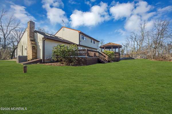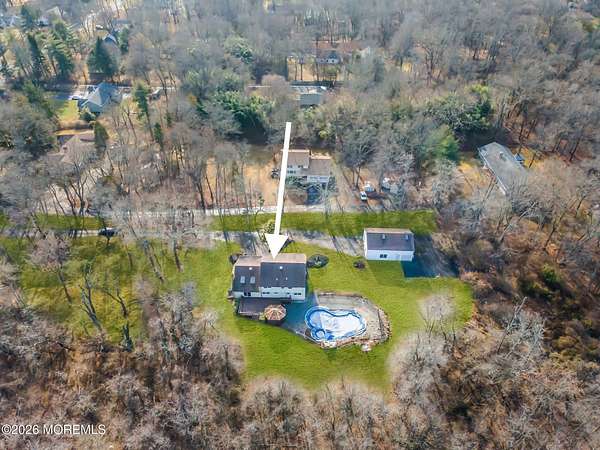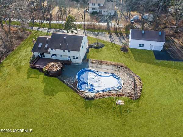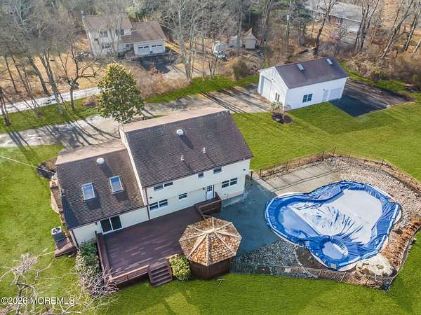 RARE OPPORTUNITY FOR THIS MUCH LAND & LIVING SPACE! Spacious 4-bed, 3.5-bath on a 2+ acre lot with a brand new HVAC system. The main level features a large living room, dining room, half bath, kitchen, family room, laundry room, and a versatile flex room (ideal for a home gym or office). Upstairs has 4 beds, including the primary suite with private bath & walk-in closet. The full basement includes a bonus room (potential office or 5th bed), full bath, wet bar, rec room, and utilities. Outdoor features include a deck and in-ground pool. The detached garage offers two bays (one perfect for a boat), an upstairs loft, and additional parking. With exceptional indoor space and over two acres of land with potential to sub-divide, this type of property is rare to come by. Don't miss out!