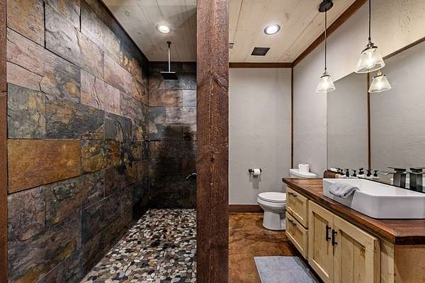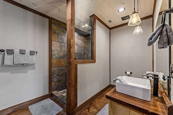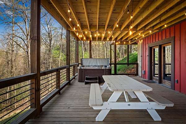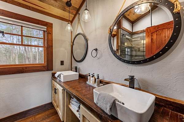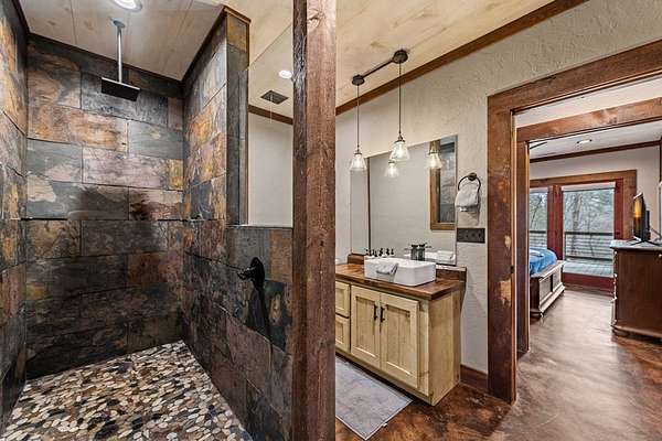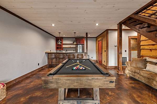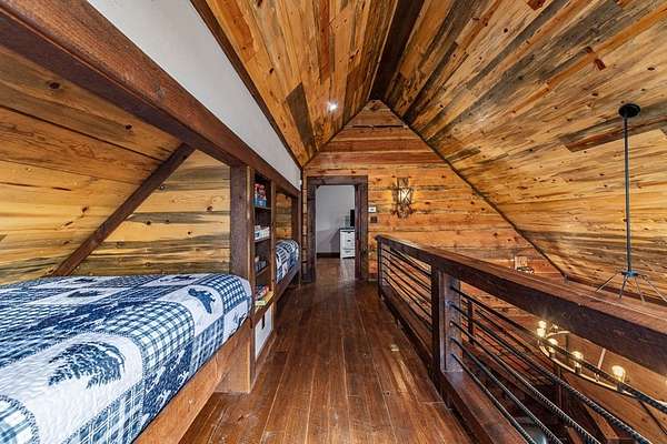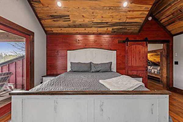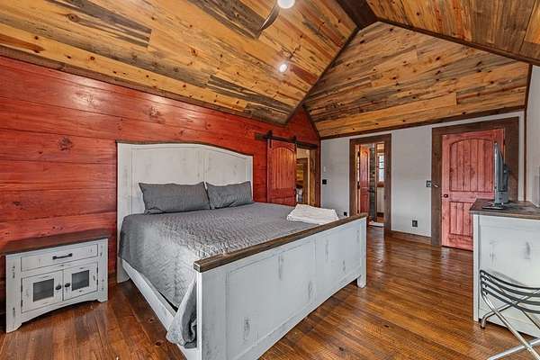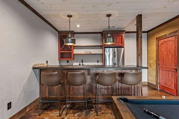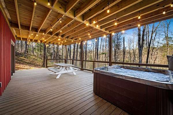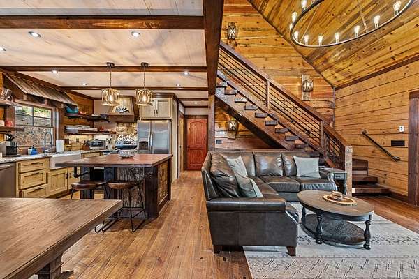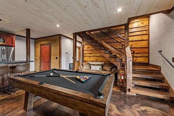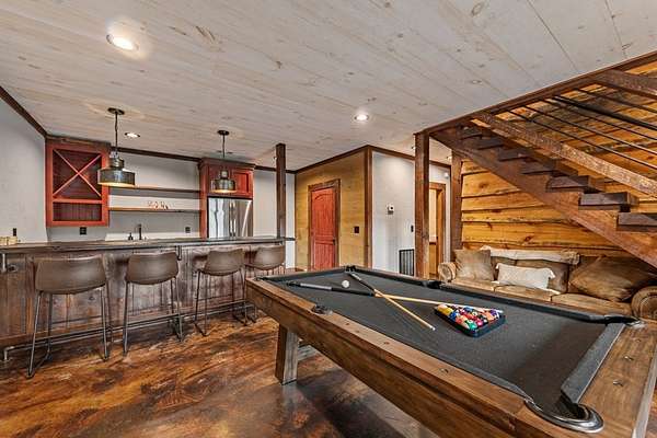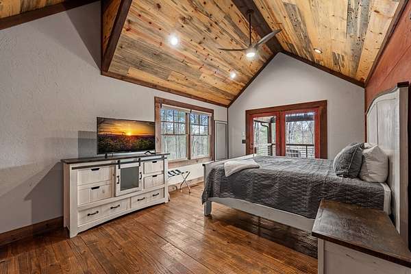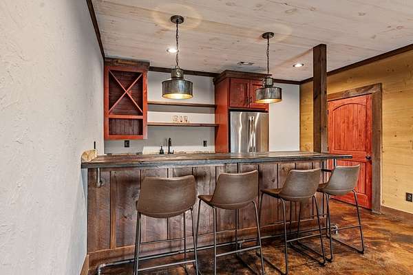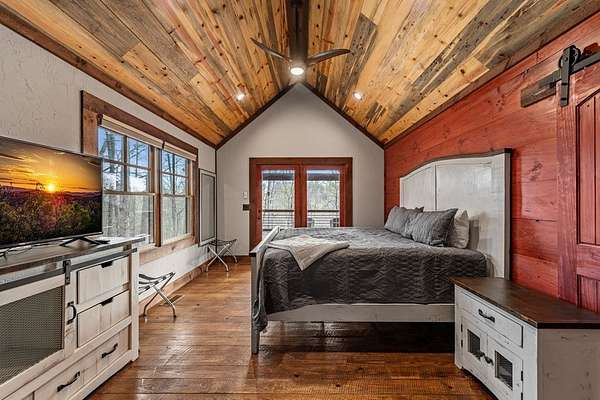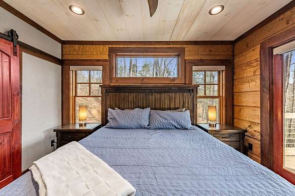Creekside living has never looked this good! This stunning Craftsman retreat by Nicholson Home Builders is the kind of place where memories are made—whether you're roasting marshmallows by the fire, soaking in the hot tub under the stars, or listening to the peaceful sounds of the creek rolling by. Tucked away on 1.8 private acres, this 3BR/3BA getaway delivers the perfect mix of cozy charm and mountain luxury across three spacious levels. Step inside to a soaring great room with vaulted ceilings, rich wood floors, and a gorgeous custom rock fireplace that practically begs for a crackling fire and a glass of wine. The kitchen is ready for everything from pancake mornings to holiday feasts, featuring granite countertops, a center island, stainless appliances, and a farmhouse sink—all flowing easily into the dining area for effortless entertaining. The main level bedroom opens right onto the back porch, where the real magic happens: another fireplace, a BBQ grill, and plenty of space to kick back and unwind. Upstairs is a built-in adventure zone with a loft bunk area perfect for kids (or fun-loving adults), plus a spacious bedroom with its own oversized balcony—ideal for morning coffee with a mountain breeze. Head down to the terrace level and let the good times roll! You'll find a game/media room with—you guessed it—another cozy fireplace, a wet bar with full-size fridge, and easy access to the oversized porch featuring a hot tub and lounge space. Just beyond, a charming path leads you to the creekside firepit and play area, where days turn into unforgettable nights. Already part of a successful rental program, this property is as smart as it is fun—perfect for an investment, second home, or your own full-time escape. And when you're ready to explore, you're just 20 minutes from Blue Ridge, filled with local eats, unique shops, and outdoor adventures galore. This isn't just a cabin—it's your mountain lifestyle waiting to happen.