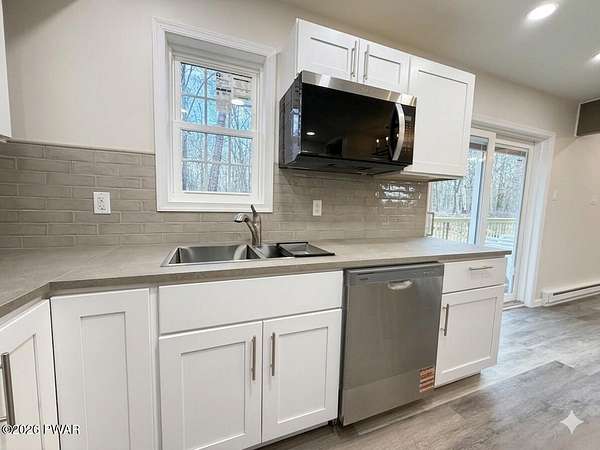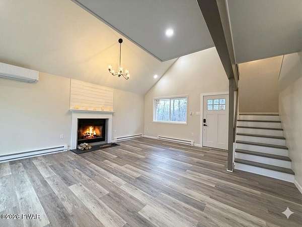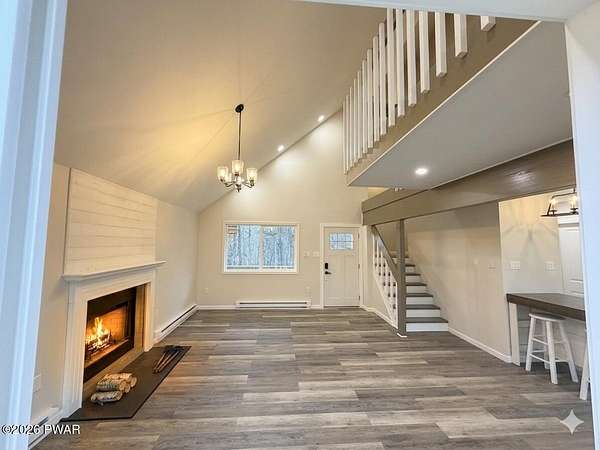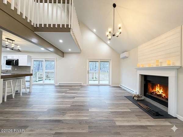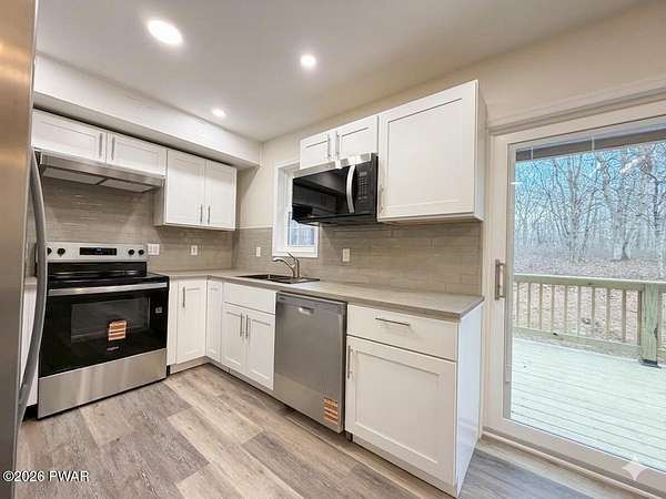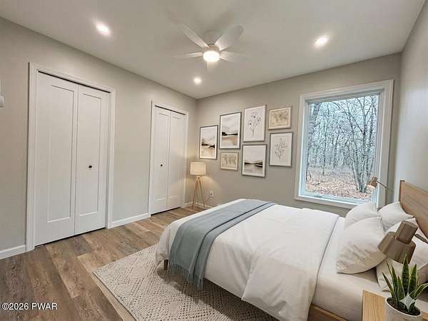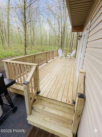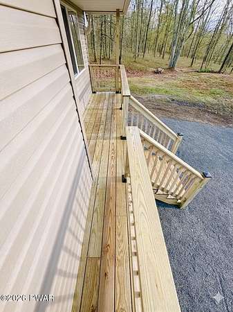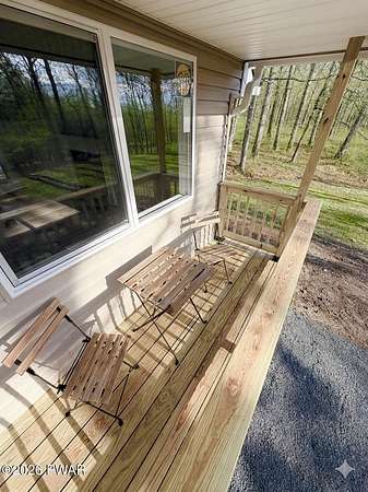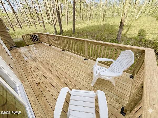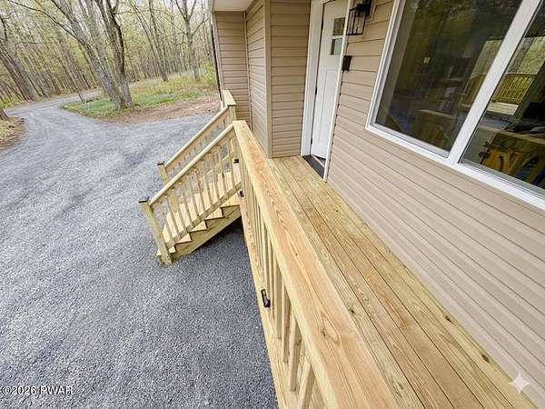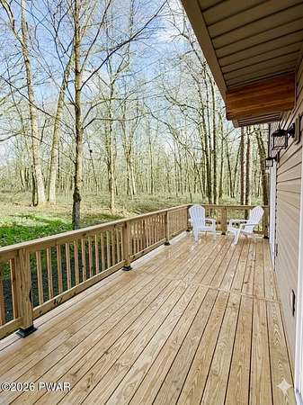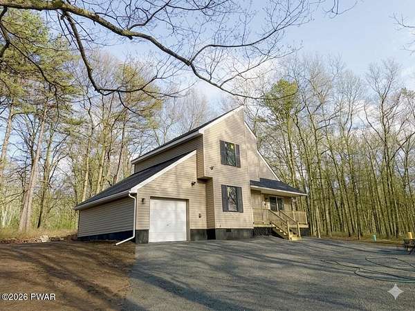 PRIVATE POCONO RETREAT ON 3.25 ACRES -- MODERN, UPGRADED, AND PACKED WITH PERKS!!! Welcome to your own slice of serenity--a beautifully renovated 3-bedroom, 1.5-bath home set on a rare 3.25-acre lot within an amenity-filled HOA, offering the perfect blend of privacy and community living.This home has been thoughtfully upgraded from top to bottom, featuring full structural improvements including a new roof, walls, windows, doors, and high-quality insulation--giving you peace of mind for years to come. Step inside to find brand new flooring throughout and a warm, inviting layout designed for everyday comfort.The fully insulated basement with thermostat-controlled heat adds valuable usable space, while major systems have all been updated, including new electrical heaters, well pump, pressure/storage tank, water filtration system, and water heater--everything is done for you.Outdoor living shines with a brand new back deck, front porch, and refreshed yard with gravel landscaping, perfect for relaxing or entertaining in your private surroundings.This home is also equipped with modern smart features, including a Blink security system with floodlight, Alexa-enabled kitchen speaker, smart code lock, and camera doorbell--bringing convenience and security together seamlessly. Plus, enjoy the added bonus of a 30-amp outlet ready for your camper or electric vehicle.Located in a highly sought-after HOA, residents enjoy access to two pools, a horse ranch, and waste/recycling services, all while being just minutes from local parks, waterfalls, and outdoor attractions.With an easy commute to New Jersey and New York and access to a highly regarded school district, this home offers the best of both worlds--privacy, modern upgrades, and unbeatable location.Don't miss your chance to own this rare Pocono gem--where comfort, convenience, and nature come together beautifully.