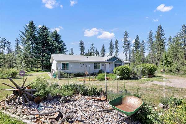 Well-kept 2004 double-wide mobile home featuring 2 bedrooms and 2 full baths, with office, situated on 2.97 peaceful acres at the end of a paved road. This property offers both comfort and functionality with a spacious living area, split-bedroom floor plan, and a large primary suite with en-suite bath. Outside, enjoy a detached garage, lean-to barn, hobby shed, two additional storage sheds, and a dedicated chicken coop area-perfect for hobby farming or extra storage. Plenty of space for animals, gardening, or simply relaxing in a quiet, rural setting. Ideal for buyers looking for privacy and room to grow, all while being just a short drive from town conveniences. A great opportunity to enjoy country living with multiple outbuildings already in place!