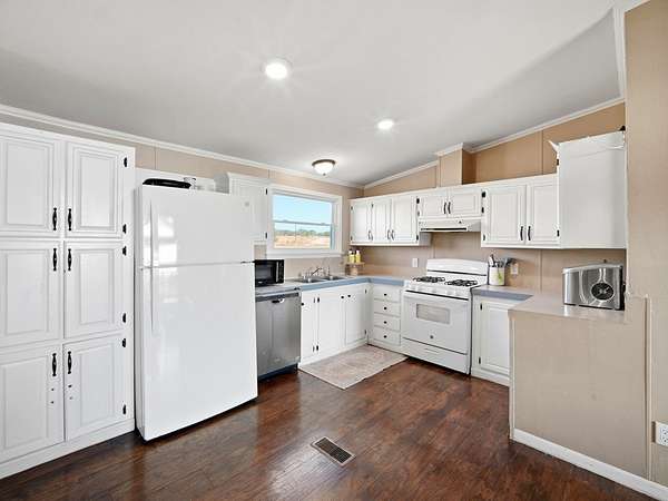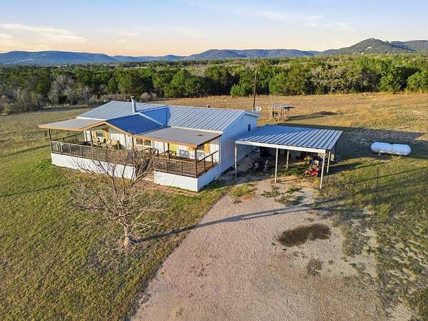 Welcome to your own private retreat at 127 Windmill Drive in Bandera, Texas-where wide-open skies and breathtaking Hill Country views create a backdrop that truly looks like a painting. Situated on 5 unrestricted acres, this property offers the freedom to live the lifestyle you've been dreaming of. Bring your horses or small livestock, start a garden, or simply enjoy the space and privacy-there are no restrictions holding you back. This inviting 3-bedroom, 2-bathroom home features high ceilings and a bright, open-concept design connecting the living room, kitchen, and dining area-perfect for gathering with family and friends. The layout feels spacious yet cozy, making it a wonderful place to call home. Step out onto the large covered front deck and take in the incredible Hill Country views while enjoying your morning coffee or evening sunsets. It's the kind of peaceful setting that never gets old. The property is fully fenced and gated, offering security and peace of mind. You'll also appreciate the large workshop-ideal for hobbies, projects, storage, or working on equipment-as well as a 2-car carport for convenient covered parking. A new hot water heater adds extra value and peace
