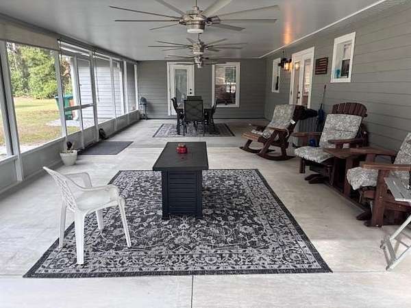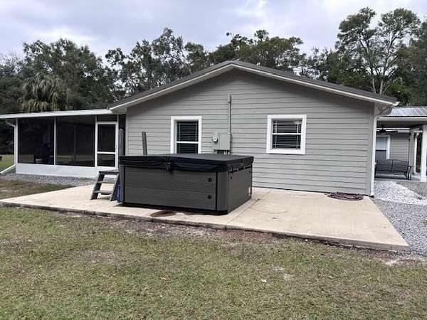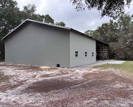 EXTRAORDINARY COMPLETELY REMODELED 3/2 BLOCK HOME with 4.5 acres AND A 4200sf WORKSHOP on a paved road! The kitchen features include white shaker-style cabinets with quartz countertops and stainless steel appliances. The dining room has a beautiful chandelier and French doors to access the rear screened porch. Elegant primary bath has the look of your own personal spa and features a chandelier, freestanding soaking tub, custom walk-in shower and a beautiful dual-sink vanity. Primary bedroom features dual closets: a large walk-in closet and a separate additional closet and also has a patio door providing access to the rear screened porch. Walk-in kitchen pantry is in the laundry room just off the kitchen and includes stainless steel washer and dryer. The guest bath features subway tile, granite countertop, combo tub/shower, linen closet and is accessible from one bedroom and living area for extra functionality. Recent new plumbing, electrical, insulation and Trane HVAC system make this property energy efficient and low maintenance for many years to come. The topnotch workshop features concrete flooring throughout, a large portion is enclosed office, tool and machinery equipment area with 2 rollup doors and steps to a loft area. Plumbing has been stubbed out for a full separate bathroom in the rear of the office area. The high roof and drive-thru feature on the rest of the workshop will easily accommodate your RV, tractor, boat, 4-wheelers, side-by-sides, etc. Other noteworthy features are premier fixtures and faucets, porcelain tile, commercial-grade vinyl plank flooring, oversized attached 2-car garage, huge 3-car detached carport/polebarn, 18x44 rear screened porch with four ceiling fans, hot tub on 26x16 concrete patio, Kinetico water system, two outdoor weather stations, front yard sprinkler system, orange trees, beautiful landscaping and even an upgraded flag pole. Adjacent to the workshop is an electric smokehouse with numerous racks and hanging area big enough to smoke 12 turkeys, your venison and pork! There is a golf-cart sized path around the perimeter of the acreage along with trees in the rear for a natural buffer from your neighbors. The roof was recently upgraded with Sealtech insulation before the new metal roof with gutters and downspouts was installed. This 4.5-acre exceptional property is located inside city limits just outside of rural Chiefland, close to all amenities, multiple freshwater springs, the Suwannee River, Chiefland golf course, and only a short drive to Gainesville and Ocala. If this sounds like what you're looking for, make an appointment to see it today!
