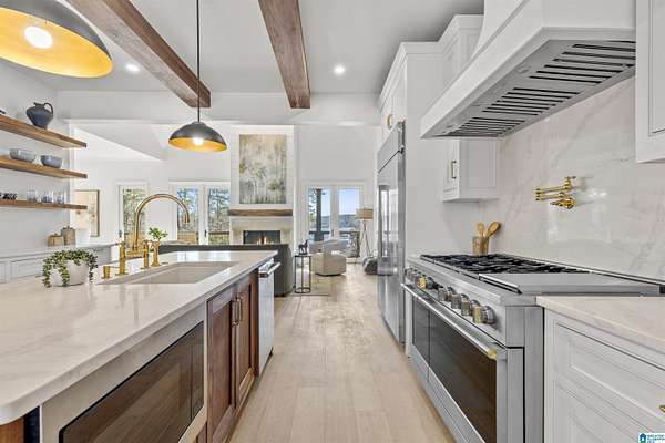 Introducing a stunning NEW construction, Lakeshore West gated community, LUXURY home on Smith Lake--a true masterpiece of modern design & lakefront living. This 5-bedroom+office, 5 full bath, & 21/2 bath estate offers comfort, style, & functionality, positioned to capture breathtaking water views throughout. Be captivated by exquisite stonework & craftsmanship that define this one-of-a-kind property. Inside, discover a gourmet kitchen with top-of-the-line appliances, custom cabinetry, a butler's pantry--ideal for both everyday living & entertaining. Each of the 5 spacious bedrooms have bath/walk-in closet, providing luxurious accommodations. The main-level primary suite is a private retreat, with panoramic lake views, a spa-inspired bath, & large closet. Enjoy the ease of 2 laundry rooms & main-level 2-car garage. Step outside to your entertaining oasis with your own pool, putting green, built-in fire pit & new dock! A MUST see! You don't want this one to slip away!
