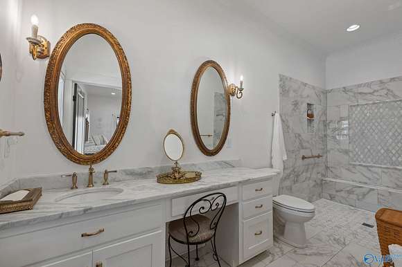 5-acre French Country gem in equestrian neighborhood. Iron double doors, herringbone red oak wood floors welcome you. Dining room with extensive molding, inlaid floors, lead to butler's pantry. Chef's kitchen dazzles with marble counters, 3 ovens, Sub-Zero fridge, 2 dishwashers. Family room with stacked stone, soapstone wet bar. Billiard room, separated by a 2-sided fireplace, leads to sunroom. Wraparound screened-in porch with outdoor kitchen overlooks pool. 1st floor ensuite. Main & back stairs lead to 4 ensuite bedrooms. Primary suite with gas fireplace, heated floor, 2 walk-in closets, office. Guesthouse offers great room, kitchen, 2 baths, gym. Anderson windows, roof 2020, generator.