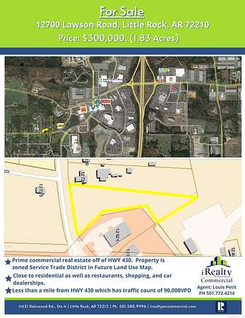 Est $2,069/moCommercial Lot with large frontage on Lawson Rd., next to Dollar General. Zoned Future Use commercial. Near many car dealerships, restaurants, gas stations, Top Golf, and only 3 miles to HWY 430.
