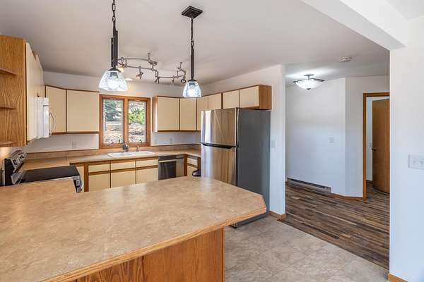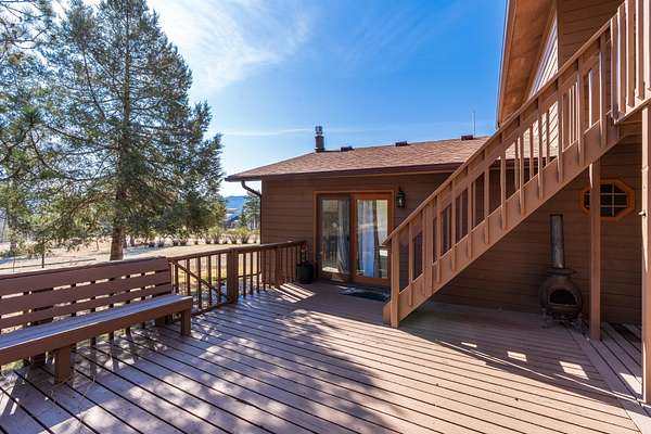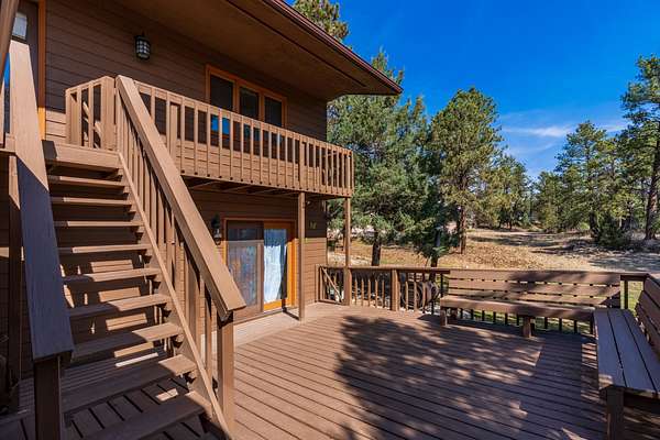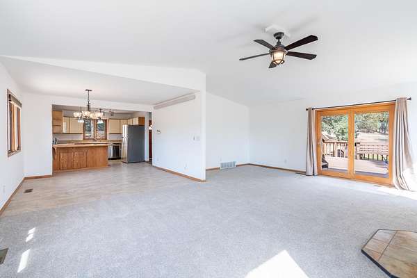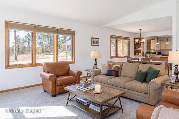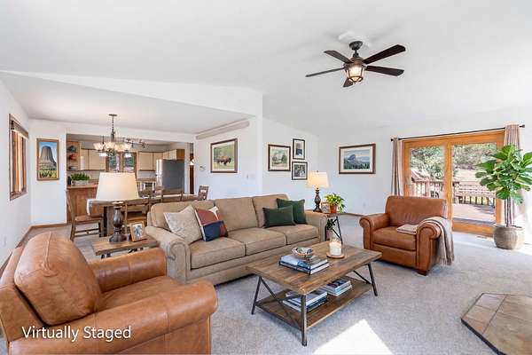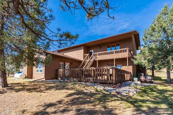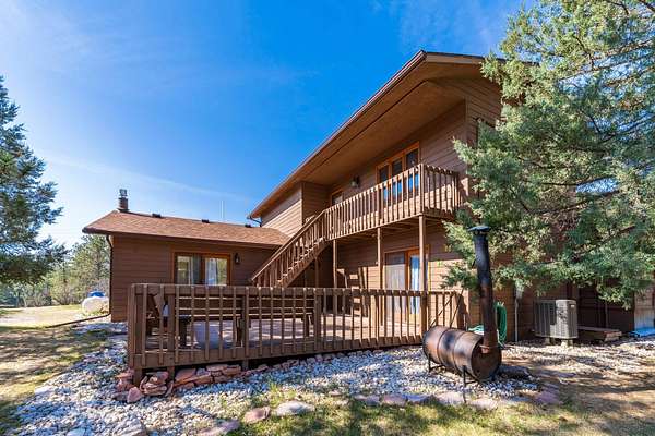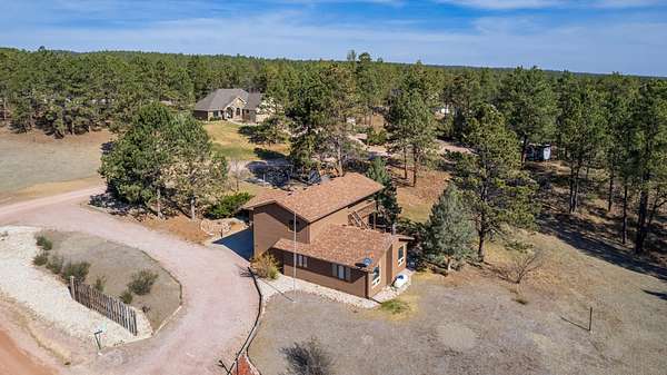 This glimmering 3 bed, 2.5 bath two-story home lies on a private corner lot that's just under 2 acres, minutes from downtown Hot Springs! The open-concept main level offers a bright kitchen, dining area, and generously-sized living room, highlighting deck access plus a new LP gas insert and new chimney. Main floor laundry and mud room add everyday convenience. Several updates including fresh interior paint and brand new carpet and flooring throughout to go with the new kitchen appliances. Upstairs you’ll find two comfortable bedrooms, a versatile office/craft room, and a full bath. The upper balcony overlooks the property and connects directly to the lower deck, perfect for enjoying the quiet setting. The exterior shines with a full repaint, and new Class 4 shingled roof. Additional highlights include an attached 2 car garage, sprinkler system, RV parking. A true gem in the rough! Perfectly located near Southern Hills Golf Course and many other attractions, this property blends privacy, convenience, and outdoor recreation in one of the area’s most desirable neighborhoods! Schedule your showing today! Listed by Cody Norberg 605-939-4300.