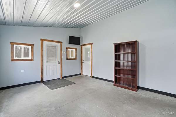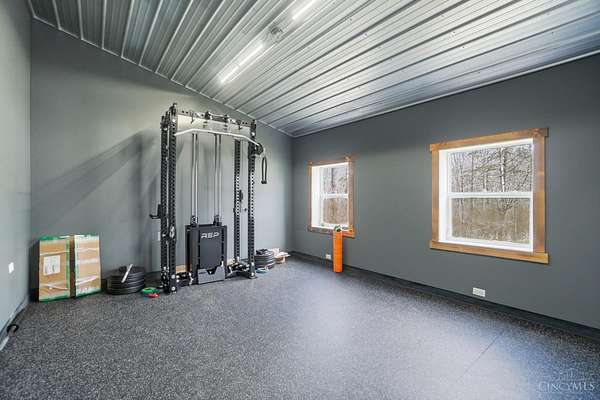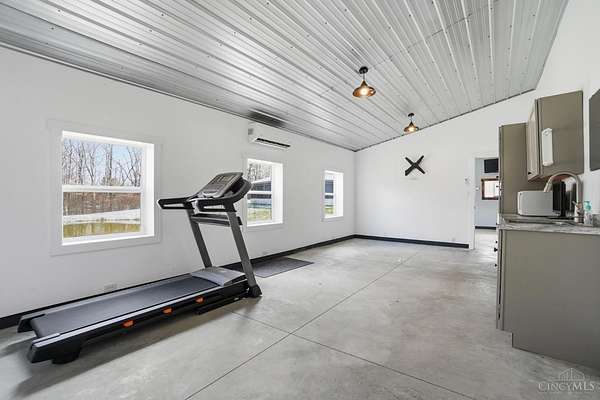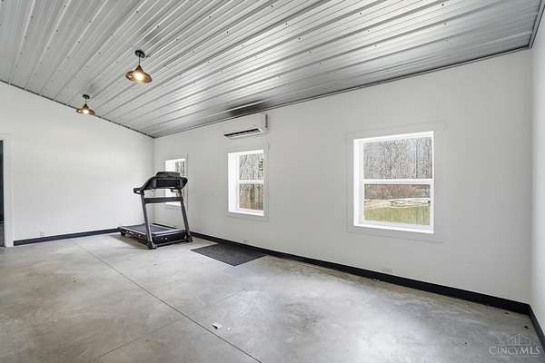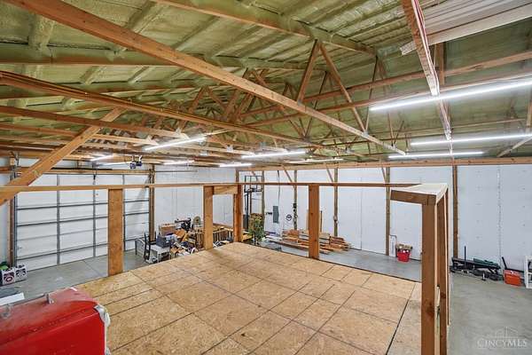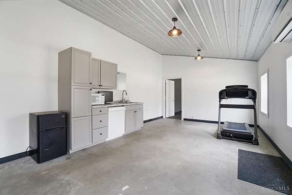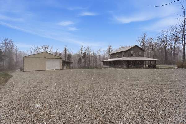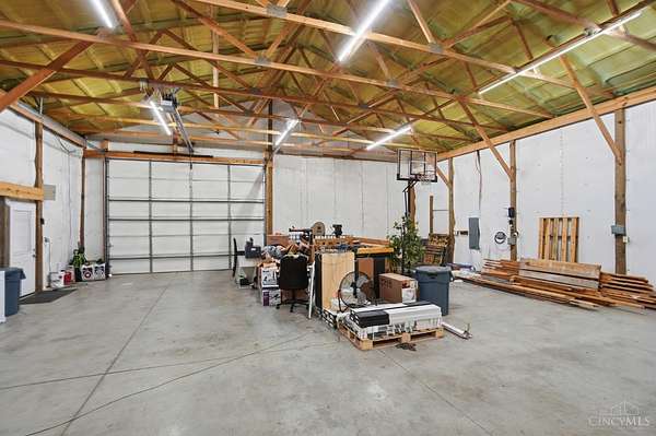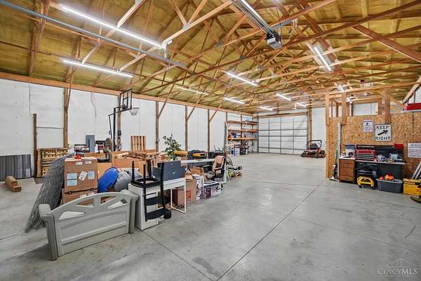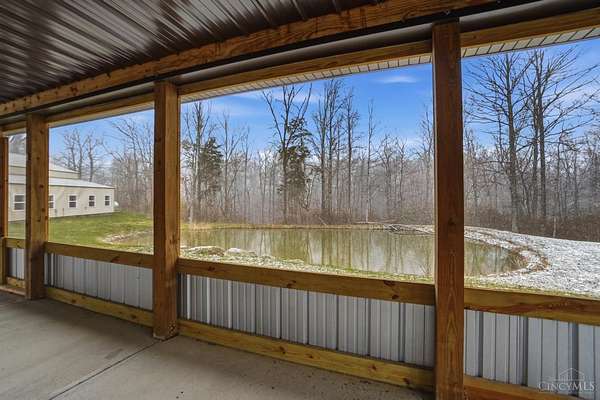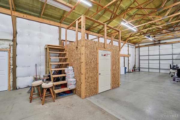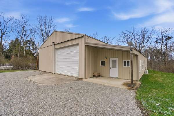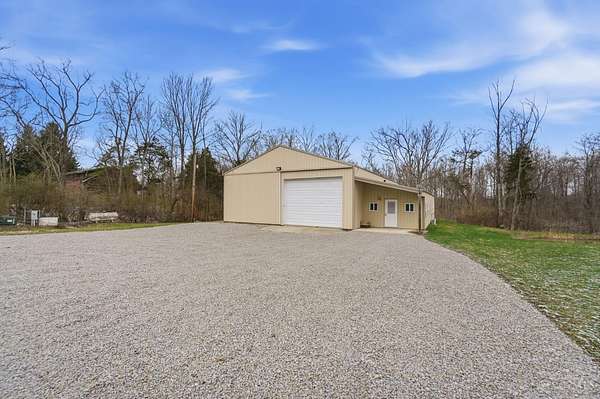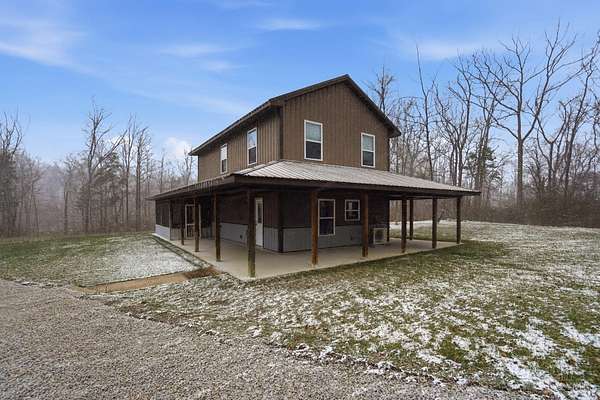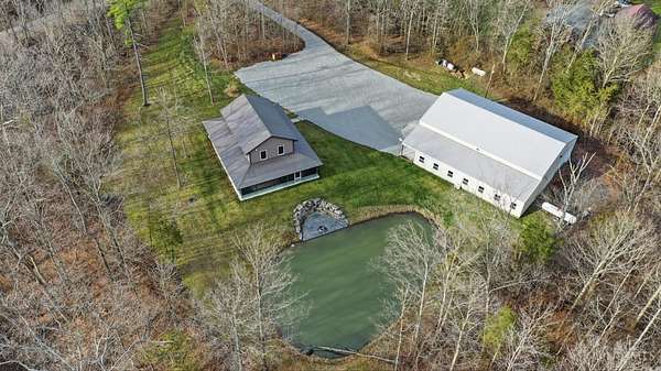 Take a look at this beautiful +/- 1156 sqft barndominium sitting on 5.95 acres! The property also features a massive 2400 sq ft pole barn, with an attached lean-to portion offering an additional +/- 728 sqft of insulated flex space. Built in 2018, this 2x6 wall-framed home features durable metal siding and a metal roof for long-term efficiency and low maintenance. The home also offers radiant floor heating, mini-split cooling/heating, a tankless propane water heater. Interior highlights include solid wood cabinetry, granite countertops, recessed lighting throughout, and new upstairs carpet. Outside you'll find a beautiful halfway wraparound porch, pond, concrete fire pit, and freshly graveled driveway, complementing the property's quiet, partially wooded setting. The barn has two large garage bays, a partial loft, washer/dryer hookups, and a toilet/sink/shower. Lastly, the insulated lean-to has a mini split and a kitchenette within. This one won't last!