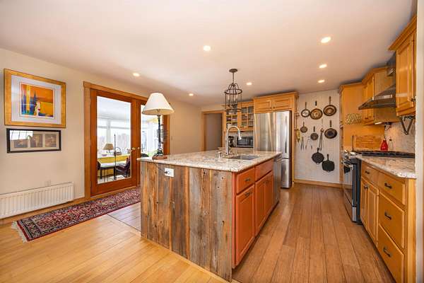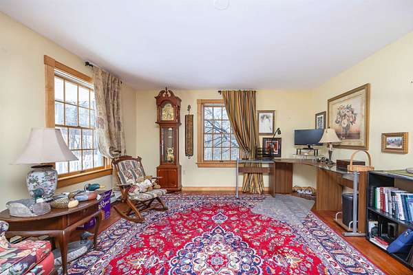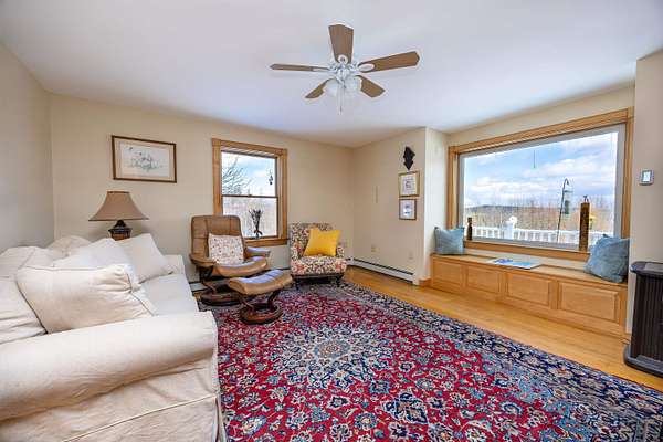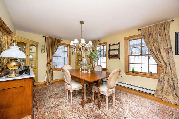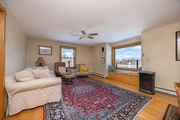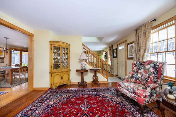 Quintessential New England Cape set on 7+/- acres in a peaceful Danville setting, offering comfort, updates, efficiency, and a view you’ll appreciate in every season. A practical mudroom connects the garage to the main living space, complete with a convenient half bath. The updated kitchen features an island and opens easily to the dining area and living room, creating a layout that feels connected and easy to live in. A large picture window with a built-in bench seat frames the mountain view and brings in beautiful natural light. Just off the kitchen, the enclosed porch is a favorite spot to take in the yard and scenery year-round, with direct access to an open deck for warmer days. A formal dining room and formal living room add flexibility on the main level. Upstairs, the primary bedroom offers generous space, three closets, and a private 3/4 bath. A second bedroom, another 3/4 bath, and laundry complete the upper level. The walkout lower level expands the possibilities with a finished living area, second kitchen, guest room, and 3/4 bath, along with storage space and an additional garage bay under the home. This lower garage space is heated and offers great potential for use as a workshop. Outside, the detached barn/workshop is a standout feature, equipped with electricity, insulation, and radiant floor heat, making it ideal for hobbies, projects, or extra workspace. Large perennial gardens add color and charm to the landscape, while a covered front porch enhances the home’s classic appeal. The surrounding acreage offers a mix of open space and nature. Solar adds an energy-conscious bonus to the property. Located just a few miles from Danville village and Route 2, this property offers a country setting with convenient access to local amenities and an easy commute.