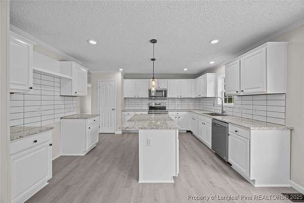 Spacious home on +/- 2.5 acres featuring large kitchen with island, granite countertops, and stainless appliances. Fresh paint and flooring throughout. Walk in closets in all three bedrooms. Large utility shed included. No HOA and plenty of room to play, build additional structures, or start your own mini-farm. 2020 Bosch HVAC unit. Convenient to Lillington, Fayetteville, and Erwin.