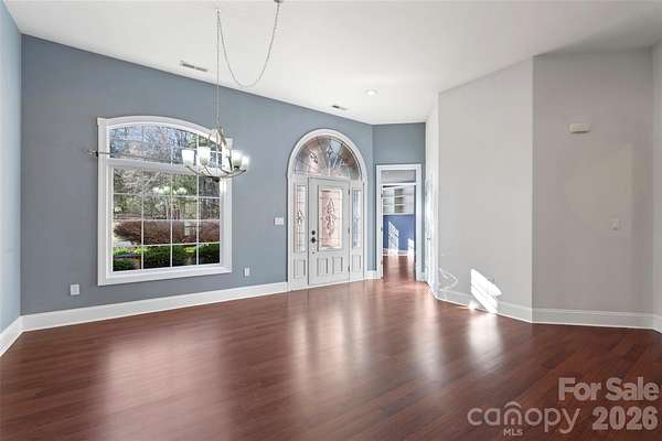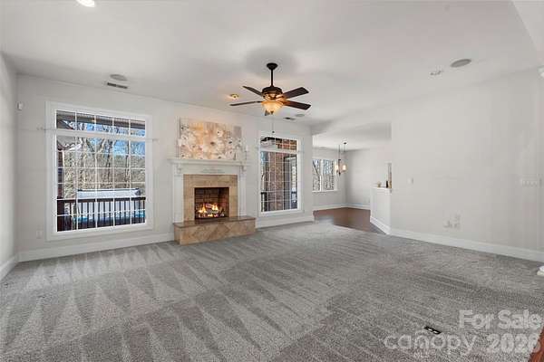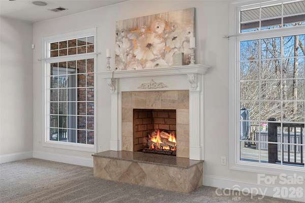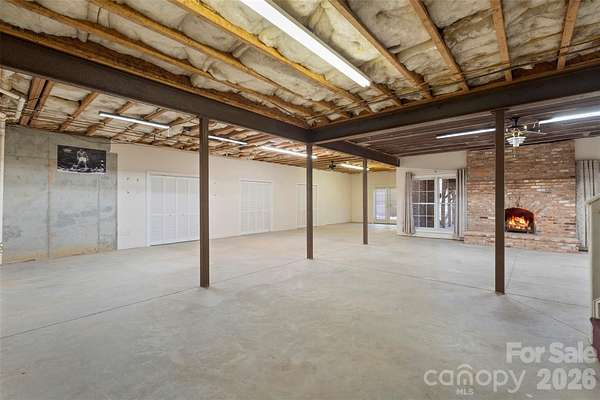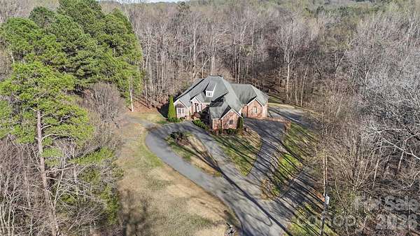 Proudly presenting this stunning full-brick custom ranch home on 3.8 private serene acres elegantly tucked back in a natural peaceful setting with an extended driveway! Boasting over 3,000 sq. ft. on the main level with an unfinished 2,600 sq. ft. basement, this home offers incredible potential. The basement features full electrical and plumbing, plus a wood-burning fireplace with brick hearth, perfect for future expansion. The attic is a full walk-in, with a staircase already planned, offering even more possibilities. The main level showcases brand-new carpet in bedrooms and luxurious, durable flooring throughout the living areas. The great room features a beautiful wood-burning fireplace with a travertine and granite hearth, adding warmth and charm. The home also includes a three-car garage on the main level and a separate two-car garage in the basement, accessible via a private driveway. Step outside to your personal sanctuary - nearly 4 acres of serene woods, creeks, and mature trees, completely private and far off the road. Enjoy the expansive deck with a hot tub, overlooking beautiful natural views. The property is both tranquil and functional, with a circular driveway and multiple access points. Located just minutes from the airport, whitewater rafting, and 485, this home combines country serenity with city convenience. Opportunities like this - a custom home with acreage, multiple garages, and expansion potential - are rare. Don't miss your chance to create your dream lifestyle at a competitive price!