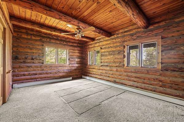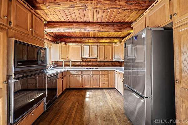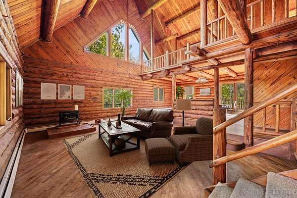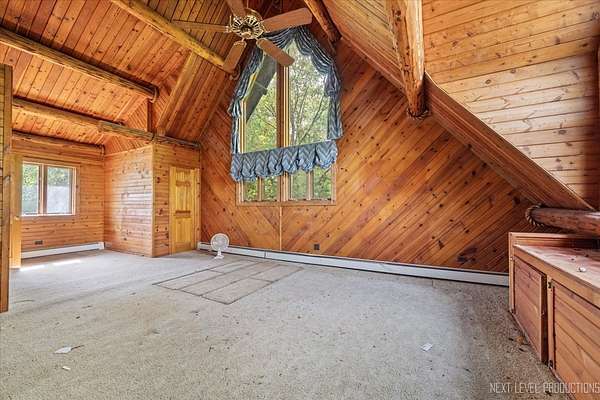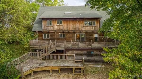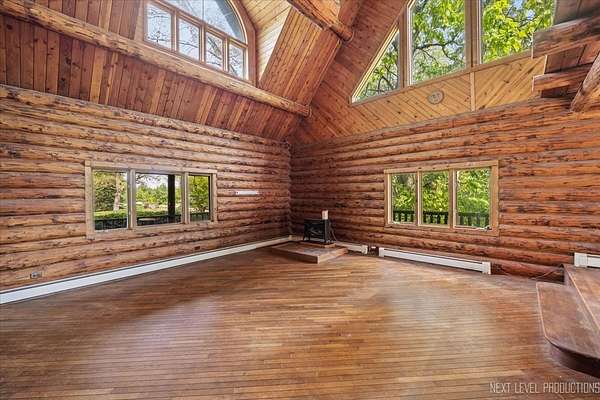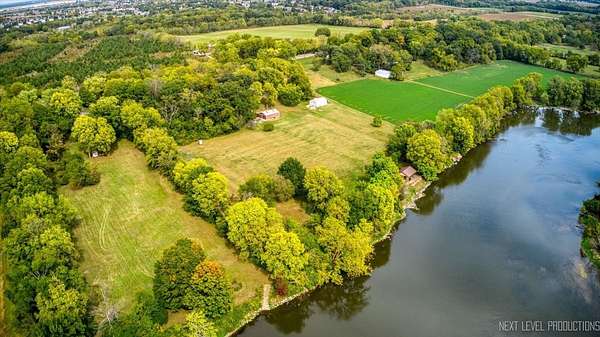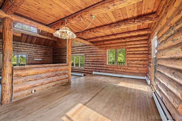 This custom-built log home is a stunning retreat, nestled on a sprawling 4.84-acre lot with 245 feet of private river frontage. This is the first time this exceptional property has been on the market and is a diamond in the rough, waiting for a buyer with a vision to bring its original beauty back to life. The home's design evokes the feel of a Northwoods cabin, with a dramatic vaulted ceiling and floor-to-ceiling windows that create an open, airy atmosphere. Kayaking, canoeing and swimming right off your own property with direct river access. With 3 bedrooms (2 on main floor) including a master suite with loft on the second floor, there's plenty of room for everyone. Vaulted ceiling and expanse of windows gives the home an open floor plan with the feel of being in the Northwoods. The property is surrounded by a forest of mature trees and the acreage leading to the river is flat making it the ideal spot for outdoor celebrations and activities. The property also includes a 36'X24' Morton pole barn with large loft and two other outbuildings, giving you a total of three versatile spaces for storage, a workshop, or hobbies. The full, walk-out basement with a roughed-in full bath offers even more potential. Yorkville schools. This is an estate and sold as-is.