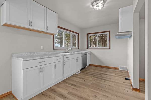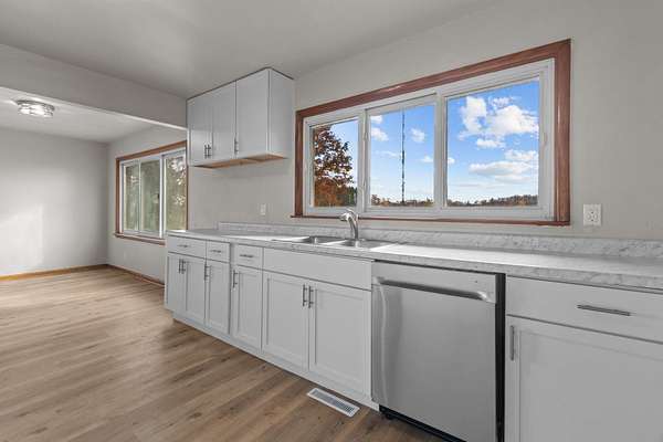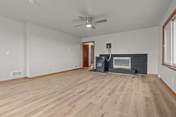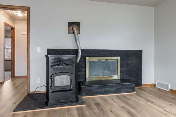 Beautifully remodeled 3-bedroom, 1-bath home nestled on just over 3 acres in Suring. Enjoy a brand-new kitchen complete with modern cabinetry, stylish finishes, and a dishwasher. The home features new flooring, fresh paint, and updated light fixtures throughout, creating a bright and welcoming feel. The living room offers both a cozy fireplace and a pellet stove for added warmth and charm. The bathroom includes a new vanity and toilet, adding to the move-in-ready appeal. With plenty of closet and storage space, this home combines comfort, efficiency, and modern country living. New furnace and water heater to be installed prior to close. Septic scheduled to be replaced mid-November. Schedule your showing today!