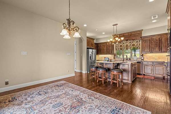 - Built-In Features, Chandelier, Decorative Lighting, Double Vanity, Eat-In Kitchen, Flat Screen Wiring, Granite Counters, High Speed Internet Available, Kitchen Island, Pantry, Sound System Wiring, Walk-In Closet(s), Wet Bar