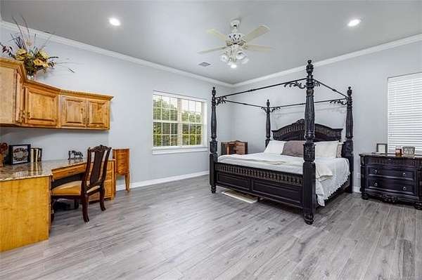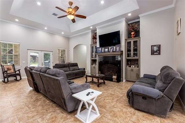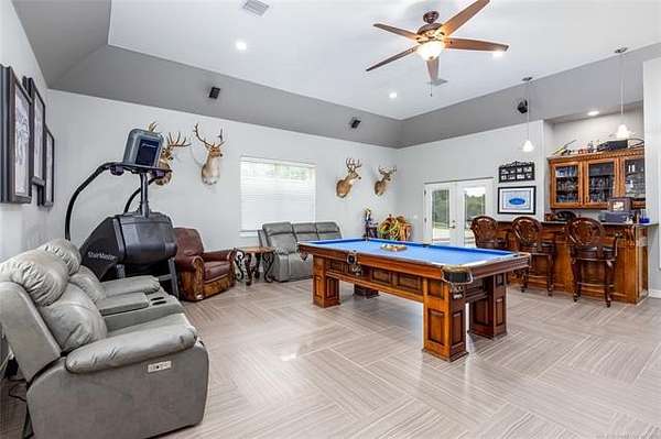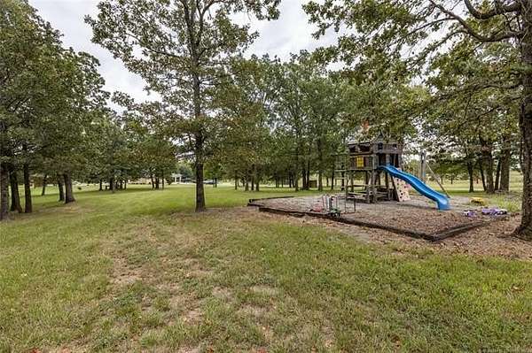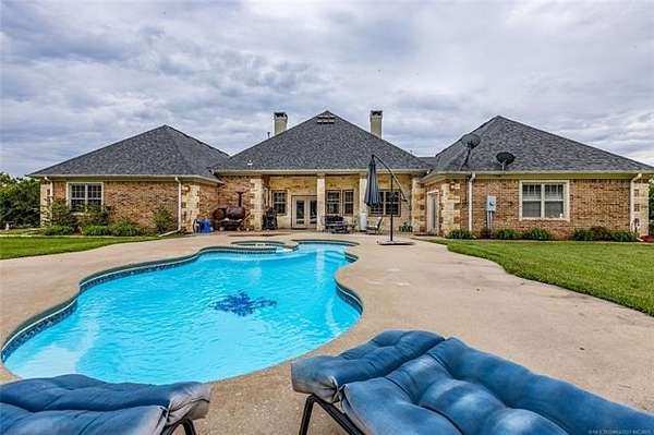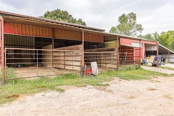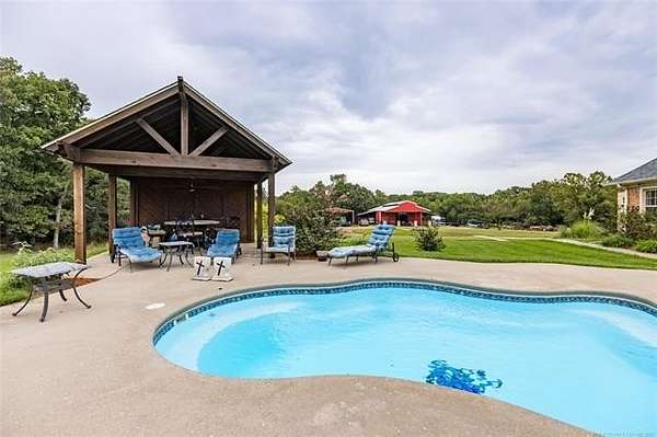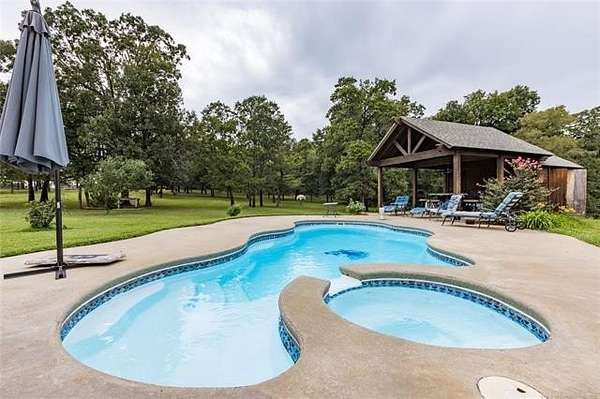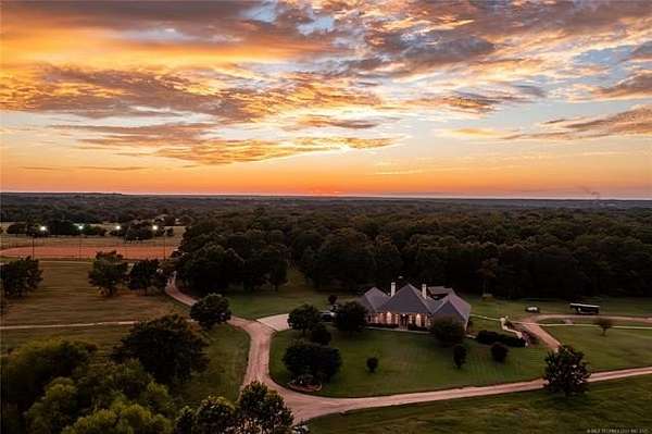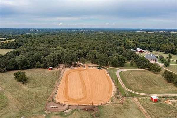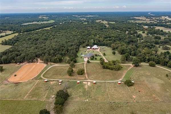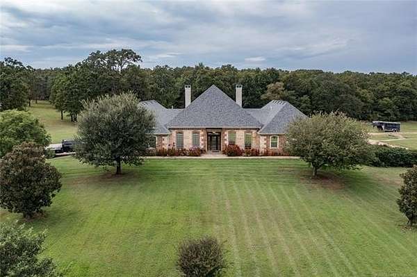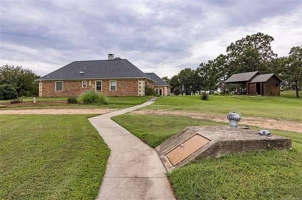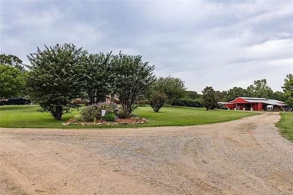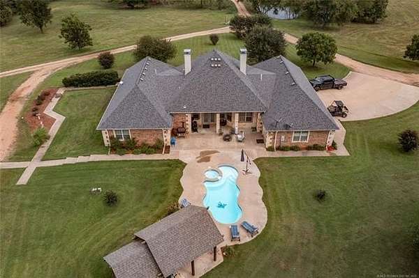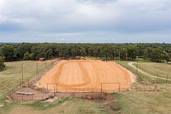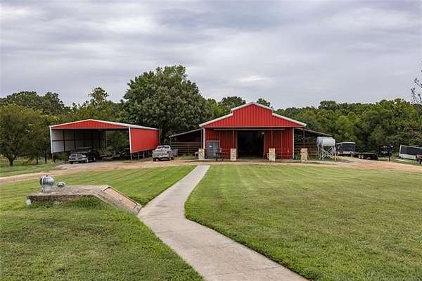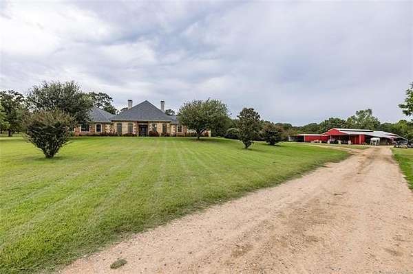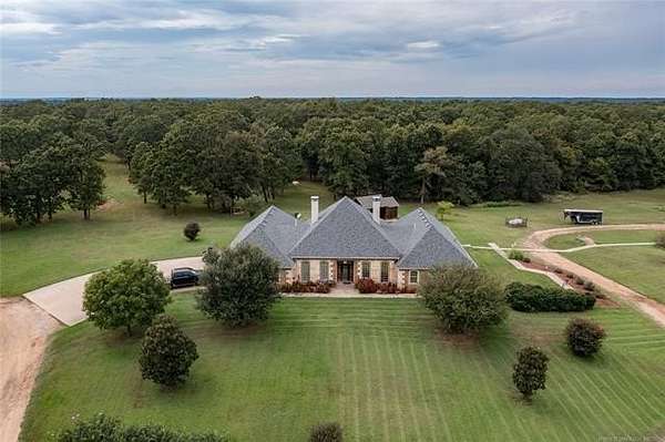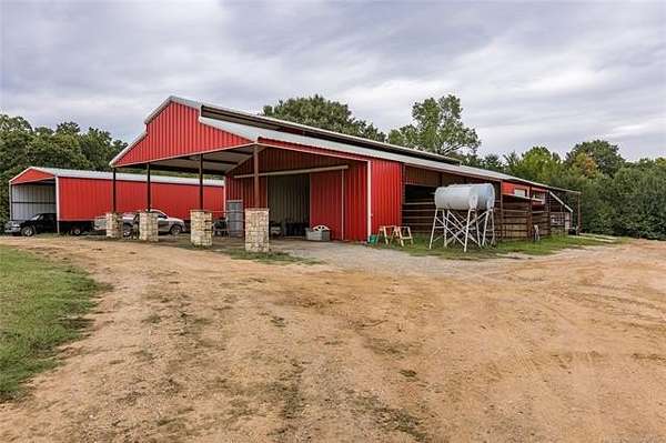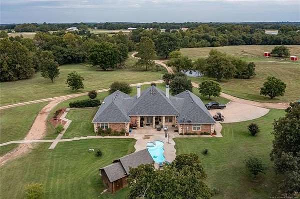 Luxury Ranch on 97+- Acres with Horse Barn and Lighted Arena nestled away from the hustle and bustle, this property offers the perfect blend of tranquility and luxury. The beautifully landscaped grounds feature a lighted and heated inground pool, a pool side gazebo with a hot tub, and a professional 14-zone sprinkler system. Horse enthusiasts will love the 5-stall horse barn with a wash rack, heated and cooled tack room, RV or LQ covered parking, hay storage, and a connex storage building. The 37x73 shop provides ample workspace, while the 166x300 lighted arena is ideal for roping, barrels, and other equestrian activities. Also included are several turn out pens and 6 horse sheds with their own water supply. Enjoy the great outdoors with 2 ponds (including a large catfish pond with a fishing deck) and abundant wildlife. The property also features a playground, picnic area, and firepit for entertaining guests. Inside the luxurious home, you'll find an open kitchen and living concept, a formal dining room, granite countertops, a propane fireplace, an office, a game room with a wet bar, and 2 master suites with private baths and walk-in closets. Owner financing available - Seller is open to offering owner financing with acceptable terms. Contact listing agent for details.