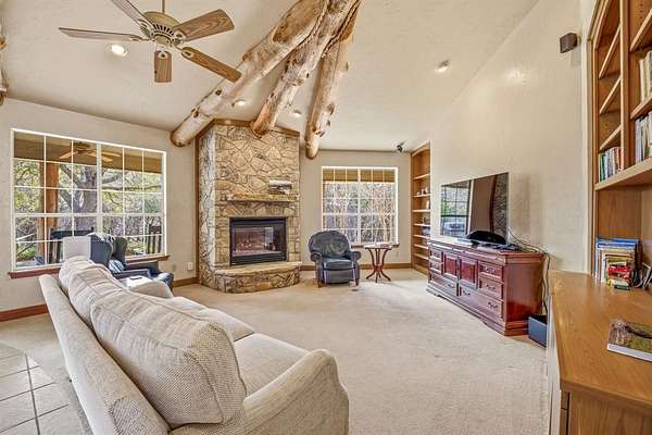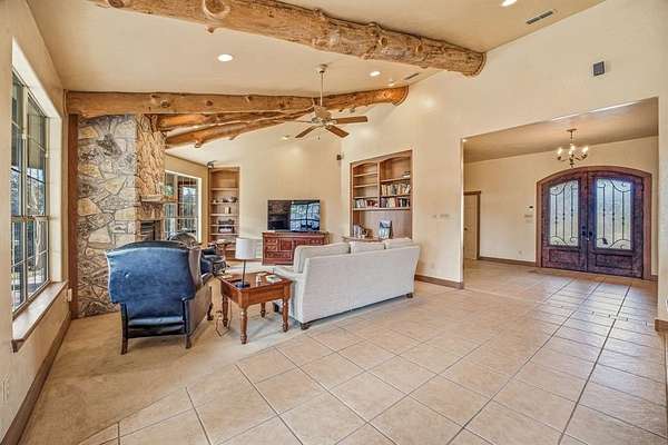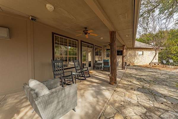 Don't miss this exceptional Hill Country getaway situated on 2 scenic acres with a tranquil pond. This well-maintained home is designed for both comfort and entertaining, featuring an incredible outdoor living space and peaceful Texas countryside views. The expansive covered back patio offers the perfect setting for outdoor cooking, dining, and relaxing while enjoying the views. Inside, the living room showcases soaring ceilings with rustic wood beams, a gas-log fireplace, and custom built-in cabinetry. The spacious dining area captures the same picturesque views and includes a well-appointed wet bar--ideal for hosting family and friends. The kitchen provides abundant cabinet and counter space along with a built-in refrigerator, making meal preparation both functional and convenient. The home features two generously sized primary ensuite bedrooms, thoughtfully split for privacy, each with a walk-in closet and private bath. Two smaller flex rooms offer versatility for home offices, reading nooks, bunk rooms, or storage. An oversized two-car garage provides ample room for vehicles, equipment, and recreational toys. The long, private driveway leads to a beautifully landscaped circular drive, creating an impressive arrival and offering abundant guest parking. Water is supplied by a shared well with five neighboring properties at just $50 per month. Enjoy added privacy and minimal traffic with this cul-de-sac location on a dead-end road. Conveniently located in Glen Rose ISD and just minutes from Fossil Rim Wildlife Center and Dinosaur Valley State Park. Whether you're seeking a weekend retreat, full-time residence, or family getaway, this Hill Country property delivers privacy, charm, and timeless Texas appeal.