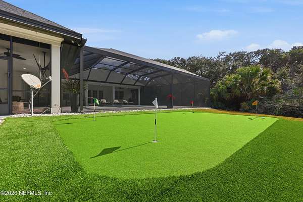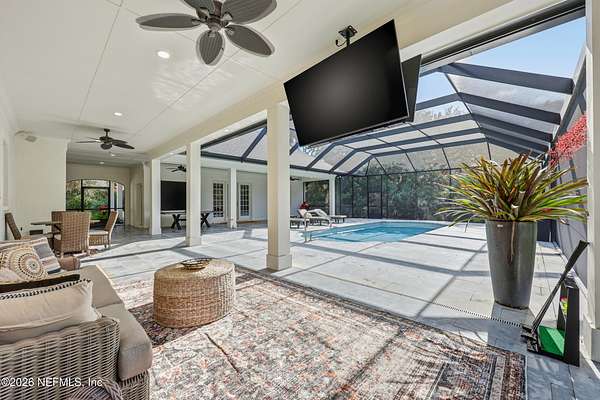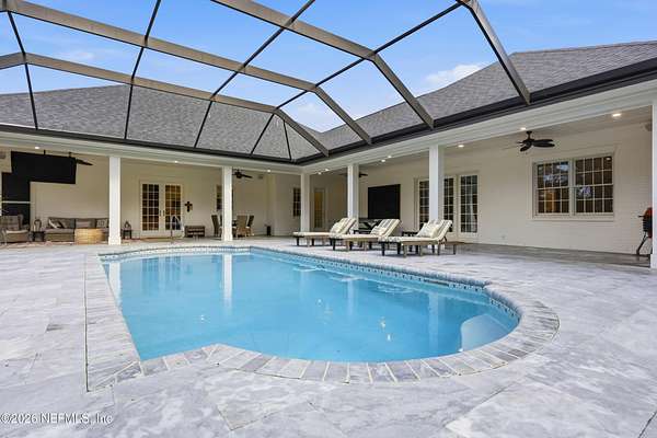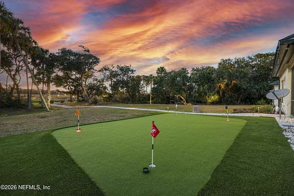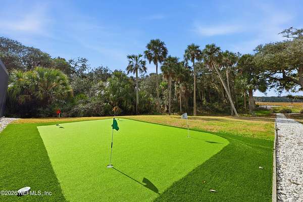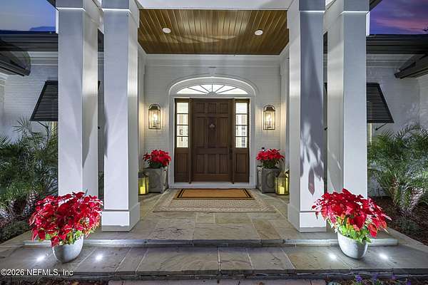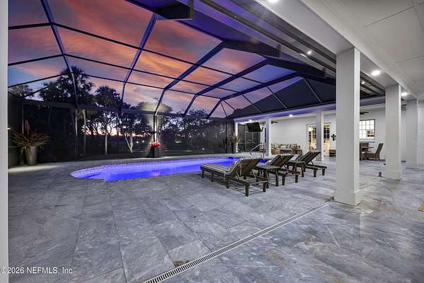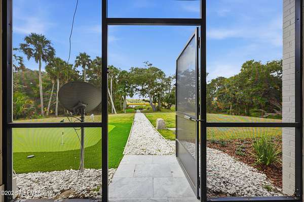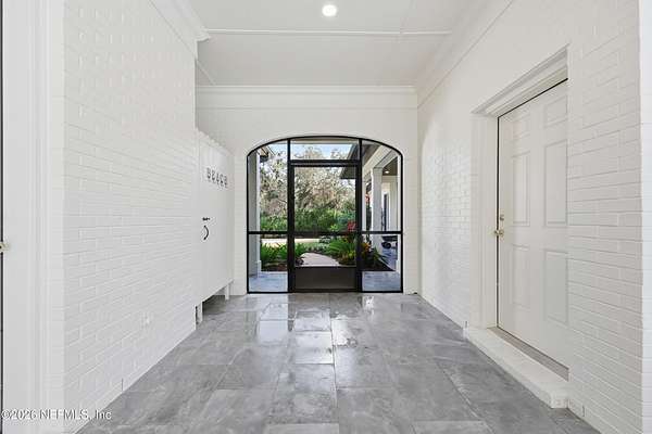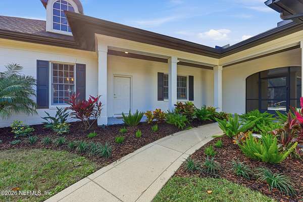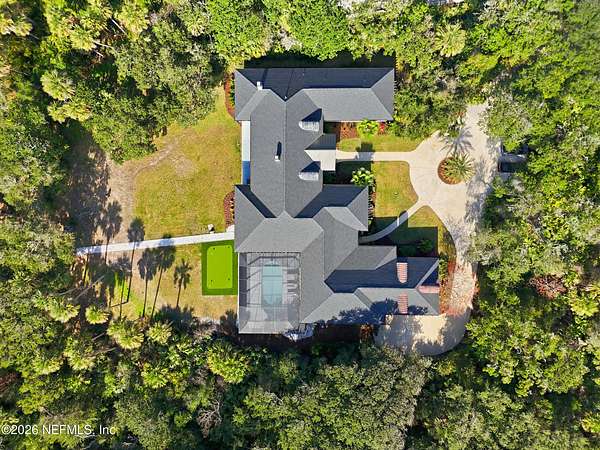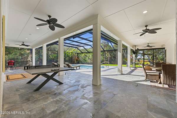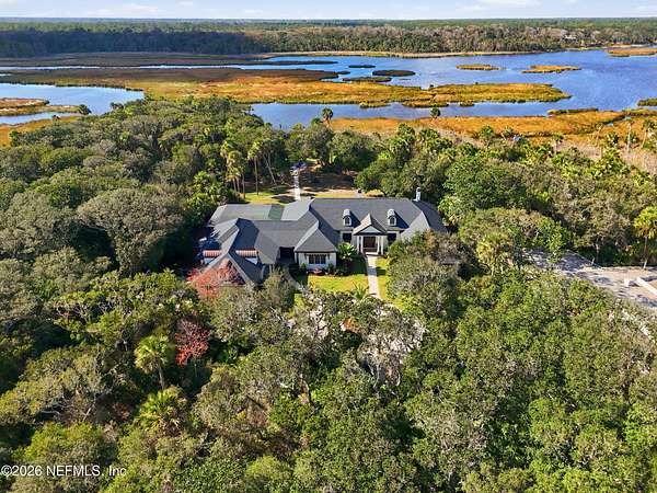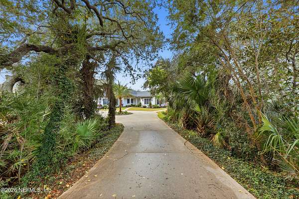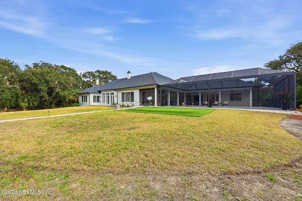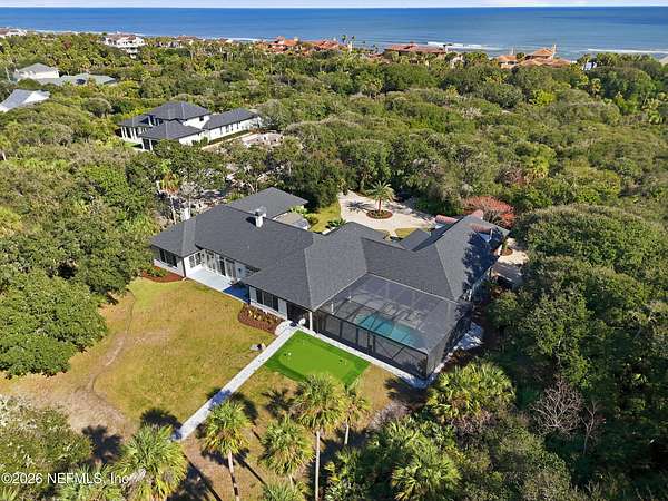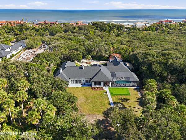 Welcome to this extraordinary single-level brick estate where refined luxury harmonizes with pristine nature across more than 200 feet of prestigious Ponte Vedra Boulevard frontage. This meticulously renovated five-bedroom, four-bathroom masterpiece commands an impressive 5,558 square feet of impeccably curated living space, offering sweeping vistas of the Guana Preserve and serene lake-the kind of view that transforms every sunrise into a private spectacle. Step through to discover hand-selected wood floors gliding beneath soaring ceilings and eight-foot solid core doors, while artfully crafted coffered ceilings crown an oversized professional office featuring custom built-ins. The family room showcases distinguished paneled walls, creating an atmosphere of timeless sophistication. Abundant windows orchestrate a symphony of natural light, framing those magnificent preserve panoramas at every turn. The chef's kitchen showcases premier Viking appliances and a custom walk-in pantry designed for the culinary connoisseur, complete with a second microwave and mini fridge for ultimate convenience. The thoughtfully appointed laundry room elevates everyday moments to effortless elegance. The generously sized Primary Suite features plantation shutters, as do all bedrooms throughout the home. Adjoining this retreat, a versatile bonus room showcases a stunning two-sided fireplace awaiting your imagination. The Primary Suite bathroom delivers a true spa-like sanctuary, featuring a built-in electric fireplace that casts a warm glow across the space. Sink into the elegant free-standing soaker tub, or indulge in the expansive walk-in shower complete with a dedicated shower head, luxurious rain shower, and separate hand-held option. The bedroom wing includes an additional bonus room currently serving as a homework station, though its flexible design accommodates countless possibilities. Entertainment reaches new heights with a sparkling saltwater pool embraced by a marble deck and screen enclosure, complemented by a private putting green for refining your game before visiting world-renowned TPC Sawgrass.. The separate guest house, featuring two bedrooms and living area with new appliances, offers distinguished accommodations for discerning visitors who appreciate refined independence or creates an ideal in-law suite or parents' quarters for multi-generational living with graceful privacy. This exceptional acreage estate includes architectural landscape lighting, outdoor shower, new roof, new climate systems and a private path to the Guana Preserve- perfect for intimate fireside evenings beneath star-filled skies which complete this unparalleled offering. A secure gated entry reveals a meandering private drive accommodating ten-plus vehicles. Positioned in Flood Zone X merely moments from the Atlantic Ocean and elite club amenities, this represents coastal Florida living at its most distinguished. Schedule your exclusive private viewing today.
