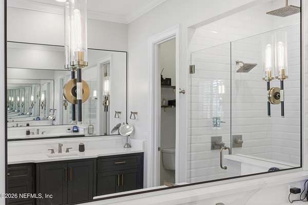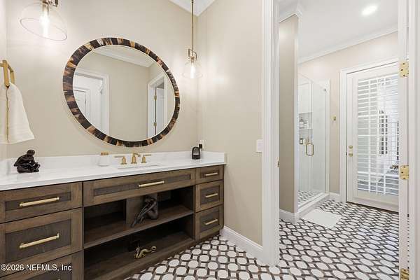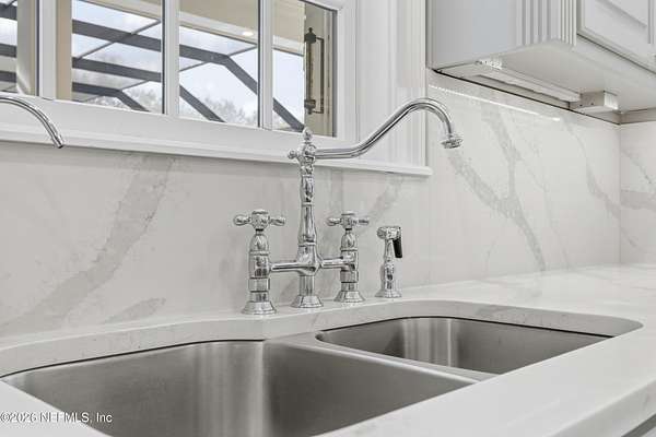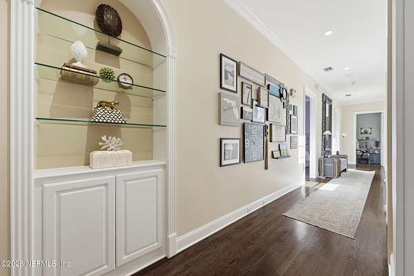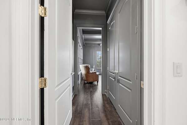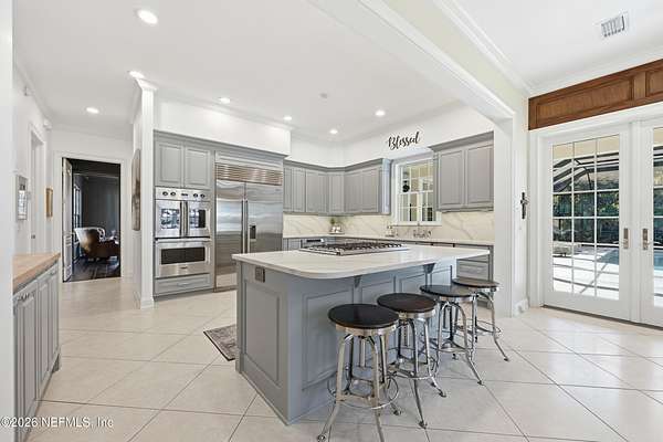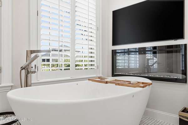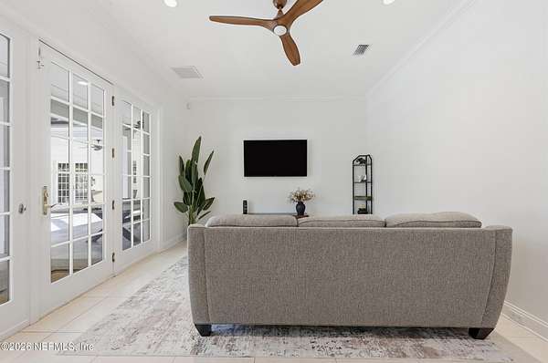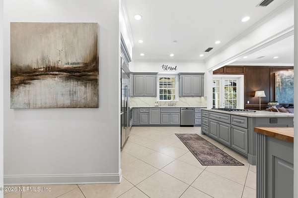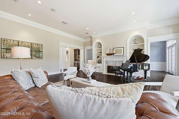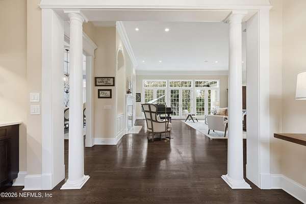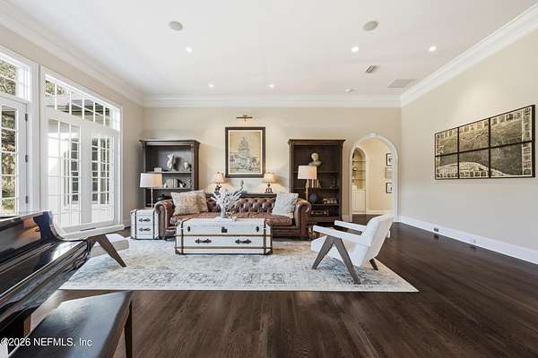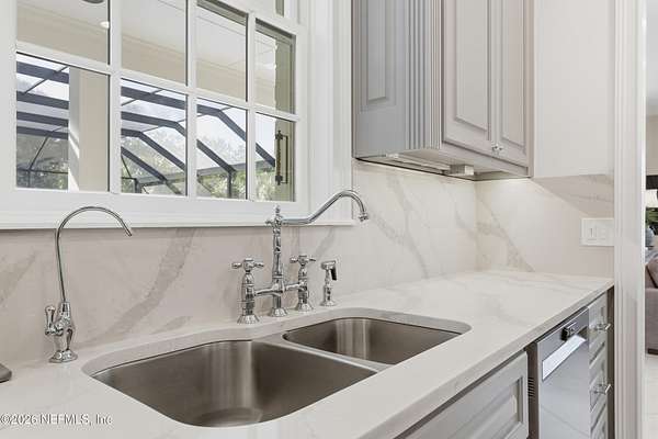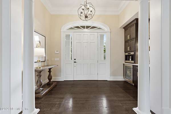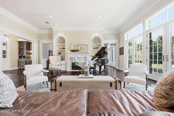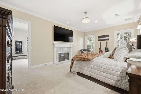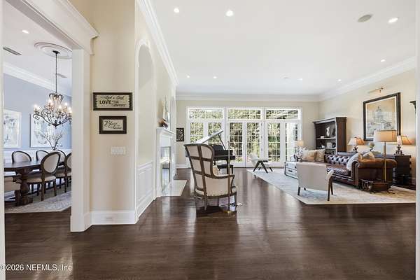 Welcome to this extraordinary single-level brick estate where refined luxury harmonizes with pristine nature across more than 200 feet of prestigious Ponte Vedra Boulevard frontage. This meticulously renovated five-bedroom, four-bathroom masterpiece commands an impressive 5,558 square feet of impeccably curated living space, offering sweeping vistas of the Guana Preserve and serene lake-the kind of view that transforms every sunrise into a private spectacle. Step through to discover hand-selected wood floors gliding beneath soaring ceilings and eight-foot solid core doors, while artfully crafted coffered ceilings crown an oversized professional office featuring custom built-ins. The family room showcases distinguished paneled walls, creating an atmosphere of timeless sophistication. Abundant windows orchestrate a symphony of natural light, framing those magnificent preserve panoramas at every turn. The chef's kitchen showcases premier Viking appliances and a custom walk-in pantry designed for the culinary connoisseur, complete with a second microwave and mini fridge for ultimate convenience. The thoughtfully appointed laundry room elevates everyday moments to effortless elegance. The generously sized Primary Suite features plantation shutters, as do all bedrooms throughout the home. Adjoining this retreat, a versatile bonus room showcases a stunning two-sided fireplace awaiting your imagination. The Primary Suite bathroom delivers a true spa-like sanctuary, featuring a built-in electric fireplace that casts a warm glow across the space. Sink into the elegant free-standing soaker tub, or indulge in the expansive walk-in shower complete with a dedicated shower head, luxurious rain shower, and separate hand-held option. The bedroom wing includes an additional bonus room currently serving as a homework station, though its flexible design accommodates countless possibilities. Entertainment reaches new heights with a sparkling saltwater pool embraced by a marble deck and screen enclosure, complemented by a private putting green for refining your game before visiting world-renowned TPC Sawgrass.. The separate guest house, featuring two bedrooms and living area with new appliances, offers distinguished accommodations for discerning visitors who appreciate refined independence or creates an ideal in-law suite or parents' quarters for multi-generational living with graceful privacy. This exceptional acreage estate includes architectural landscape lighting, outdoor shower, new roof, new climate systems and a private path to the Guana Preserve- perfect for intimate fireside evenings beneath star-filled skies which complete this unparalleled offering. A secure gated entry reveals a meandering private drive accommodating ten-plus vehicles. Positioned in Flood Zone X merely moments from the Atlantic Ocean and elite club amenities, this represents coastal Florida living at its most distinguished. Schedule your exclusive private viewing today.
