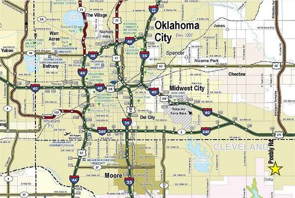 From I-40 take S Peebly Road exit 169 - turn S for 3 miles. Property is on East side of S Peebly Road (NEC of Peebly and 134th). Property is on East side of Peebly Road - Agent must accompany!