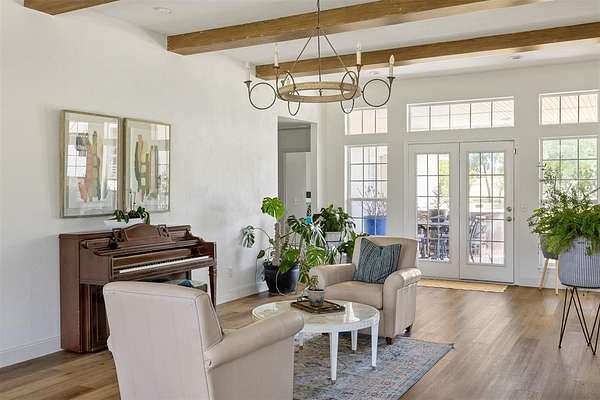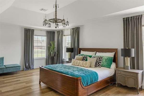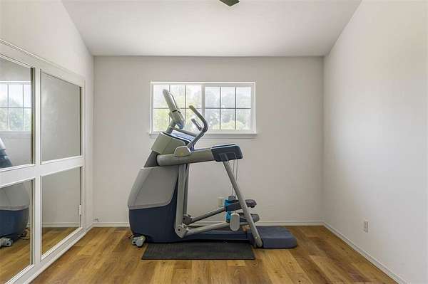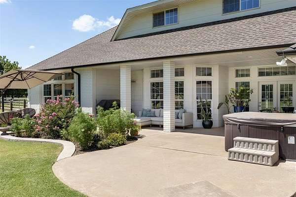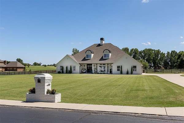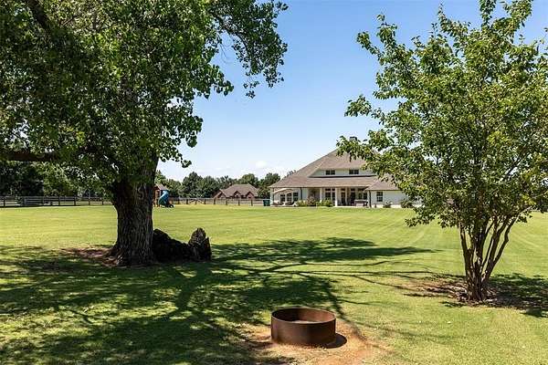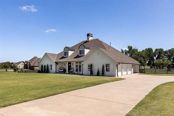 Land, lots of land under starry skies above-you'll find it here. Here's the twist: this property offers a rare sense of space yet sits only minutes from Mustang, Yukon and I-40 to Oklahoma City. This remodeled Dallas-style home is set on five acres in a quiet, established neighborhood of acreage estates. Its painted brick exterior, dormer windows and inviting front porch give it a classic presence, while the gracious drive and neat landscaping add to the welcome. Inside, natural light fills the home. The formal living room is a centerpiece with exposed wooden beams, generous windows and a marble-surround fireplace-perfect for gatherings or a quiet morning coffee. French doors open to the covered back porch, a natural extension of the home where you can grill, dine or unwind. The kitchen connects seamlessly, designed for beauty and function with quartz countertops, a hidden pantry, SubZero refrigerator, commercial gas range, custom cabinetry and a large center island. Just off the kitchen, a formal dining room sets the stage for special occasions while a bay-window breakfast area is ideal for family meals or soaking in the view. The second living room is relaxed with built-ins, a fireplace and large windows framing the outdoors. Two primary suites on the main level offer comfort and versatility, each with a well-appointed bath and generous closet. Upstairs, there's another ensuite bedroom plus two additional bedrooms served by a hall bath, along with a bonus room and an exercise room that can also serve as a fifth bedroom. A spacious mudroom and laundry with a pet wash station is one of the thoughtful details that make daily life easier. Outside, the land opens up around you, inviting evenings under the stars, animals grazing, gardens growing or projects in the 30x20 shop. In the Mustang School District and minutes from I-40, shops and restaurants, this beautifully updated five-acre property offers land, privacy and luxury living in a location that's hard to match.