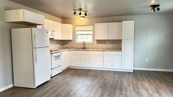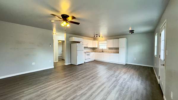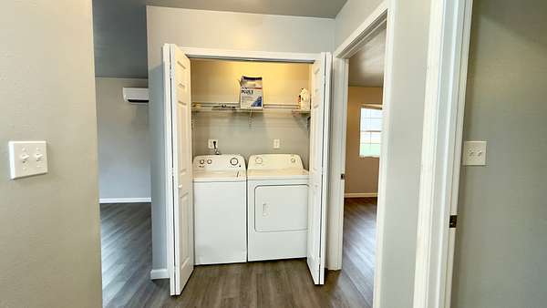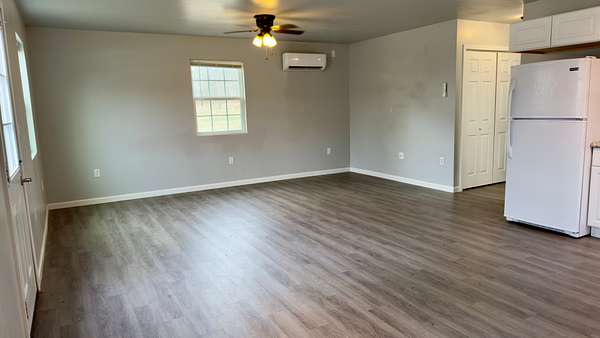 Built in 2020, this 864 square foot move-in ready home offers modern construction, low maintenance living, and the privacy of small acreage. The open-concept layout features a spacious kitchen, living, and dining combination, creating an efficient floor plan. The home includes a professionally installed mini-split heating and cooling system with three indoor units and two outdoor units, designed for energy efficiency and year-round comfort. System carries a 10-year warranty.
