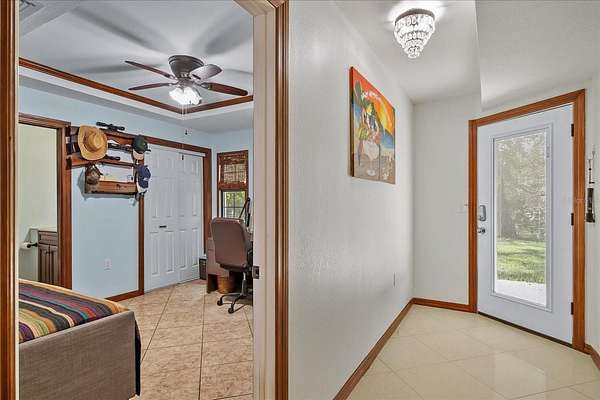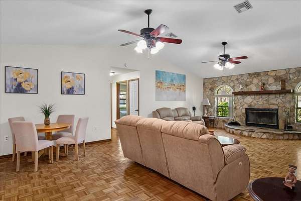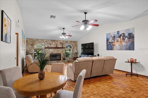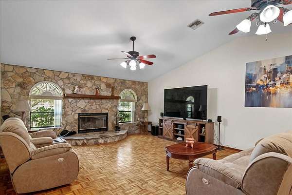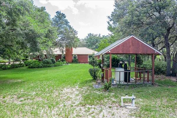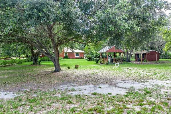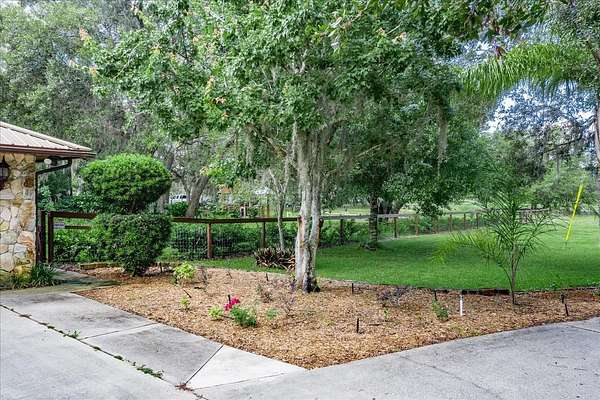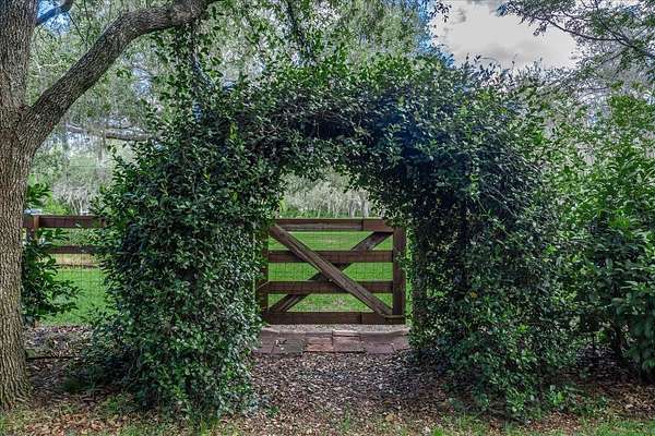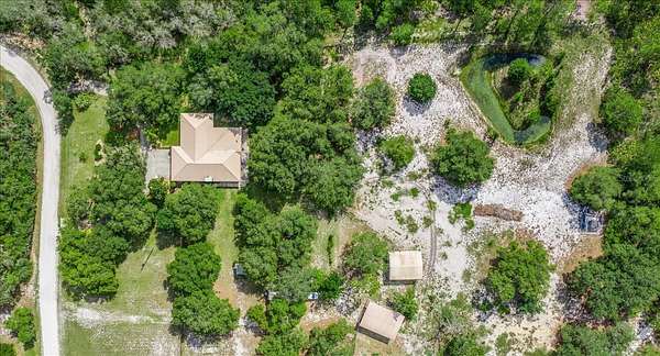 FABULOUS PROPERTY FOR ANIMAL & NATURE LOVERS located in the Gated Community of Blue Jordan Forest, classified as a Wildlife Preserve and located near Walk-In-The-Water Wildlife Management Area for trail riding! The beautiful home sits on 4.28 Acres offering 2,438 sqft with 4 BD/3 BA, desirable open concept, split bedroom plan and cathedral ceilings. BRING your Horses & Chickens as this property is ready with a 36'x24' Barn, a Coop, Fencing and a Pond! A circular driveway brings you to a welcoming screened entrance with flagstone accents and tiled floor, then leads inside to a well-designed floor plan with extra living and entertaining space. The spacious living room has a cathedral ceiling and its porcelain tile flooring flows into the dining room that stands convenient to the kitchen, with pass thru window. Warm recently sanded and stained parquet flooring begins at the front door covering the family room, the kitchen has brand new appliances and has an eat-in area. The kitchen's oak cabinetry compliments the counter tops and stands open to the gorgeous family room with cathedral ceiling and handsome flagstone fireplace flanked with arched windows, and offering an extra-large hearth for sitting fireside. The private master suite has a new elegant bathroom coordinating granite dual sink vanity and decorative tile & glass shower that includes multi-showerheads (separate temperature control); the comfortable bedroom offers large walk-in closet, porcelain tile floor and ceiling fan. An en suite bedroom with trey ceiling, tile shower stall and granite top vanity, is ideal for overnight guest, in-law or young adult, it stands near an exterior entrance. This well-maintained property has much to offer outdoors, the afore mentioned Barn has 3 stalls, concrete slab/enclosed 12x12' tack/feed room, water & electric under a metal roof. The Chicken Coop is 12'x12' w/metal roof with a 60'x60' pen. An additional bonus to this amazing property is a 30'x25' large metal building/workshop complete with electricity, water, and 220v hookup! If additional living space is needed, the attached garage is nearly finished as it has ductwork and vents already in place. The property has a huge BRAND NEW irrigation system, Brand new shallow well for irrigation as well as purification system on main well, trees, attractive landscaping accented with wood fencing. Enjoy the seclusion of the forest and nearness to Lake Reedy, Lake Walk-In-Water and Wildlife Management Area with access to hiking trails and horse trails! This Central Florida location is just minutes to the downtowns of Frostproof and Lake Wales with nearby major highways leading to Florida beaches and Tampa-Orlando-Miami.