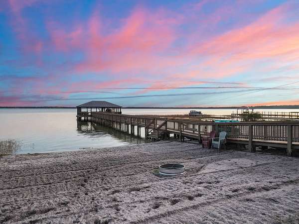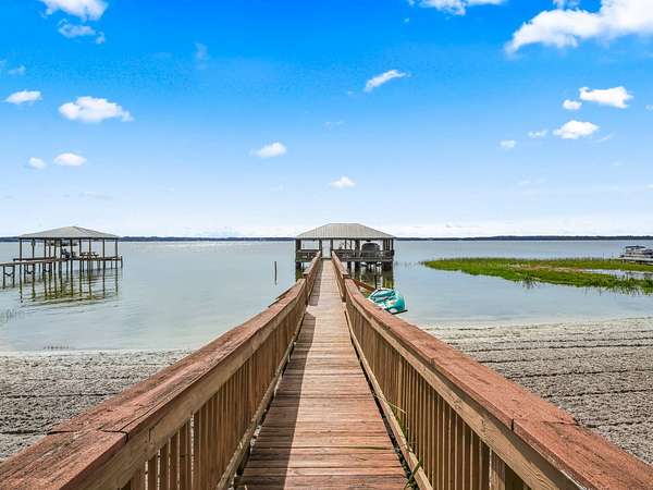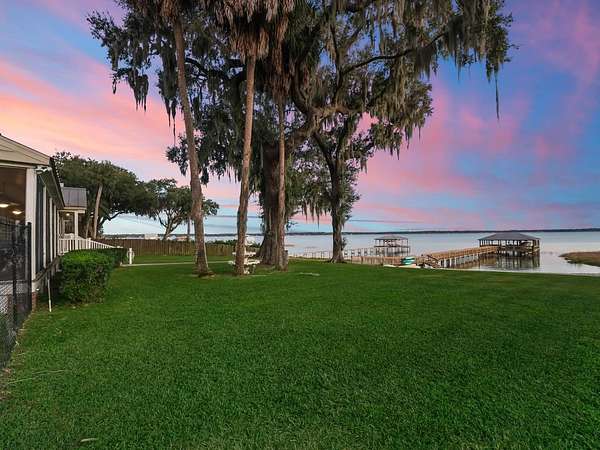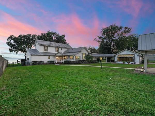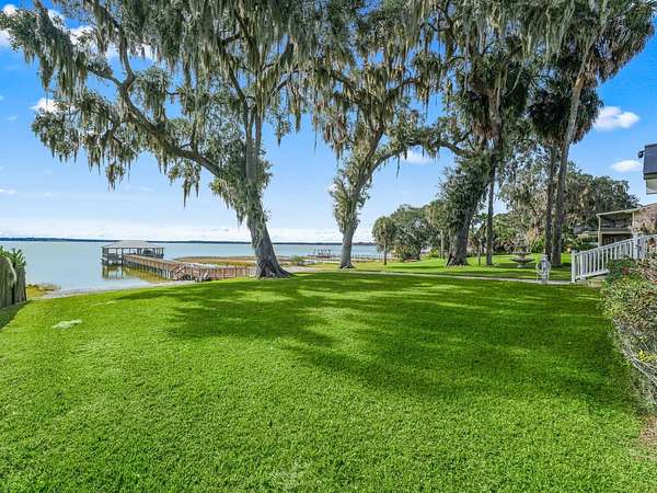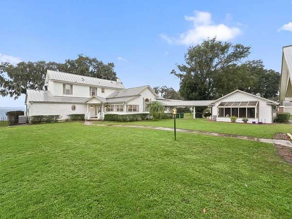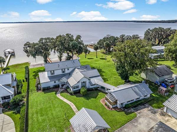 Big Lake Weir, north shore Paradise only 15 min. north to Ocala or 15 min. to The Villages! Indulge in this 2.45 Acre private, gated lakefront estate with 160 ft of soft white sand beach. 5 BR/5.5 bath, 3,946 SF Main home was classically and tastefully renovated with features that are impressive throughout with unparalleled quality construction, state of the art amenities and stunning interiors. Enjoy the sunrises and sunsets over the lake on the huge back porch or move on to the class A boat-cabana house over the water. There is nothing like enjoying a delicious dinner at one of the lakeside restaurants by boat after a day of water activities right in your own backyard or just a day reading in the hammock. Covered walkway leads from main home to 1 BR/1 Bath cottage/guest house with full kitchen, living area, bath, sunroom, and the 3-car garage. Additional two cars accommodated in tasteful, detached, covered parking next to main home. This private estate is the ultimate dream - see attached detailed feature list. Additional possibilities include R-3 zoning/8 du per acre.
