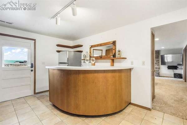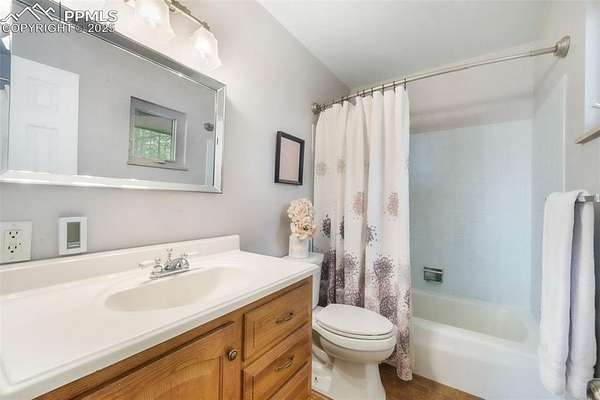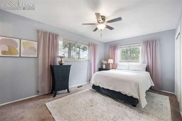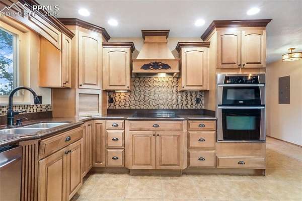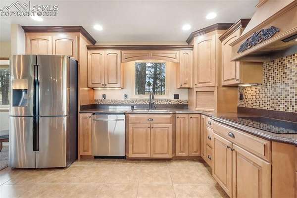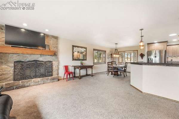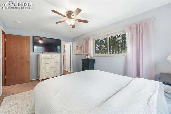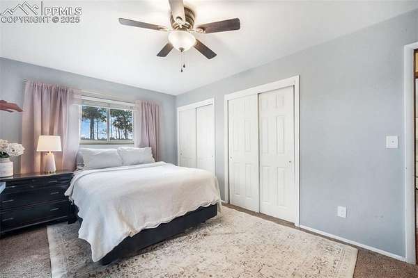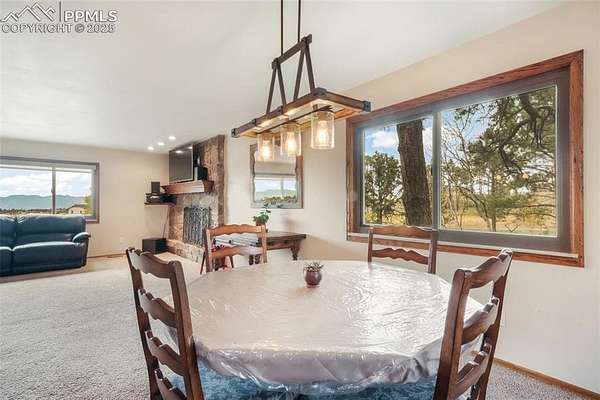 Welcome to this beautiful ranch-style home nestled on 4.77 acres in desirable Black Forest-where breathtaking Pikes Peak views and peaceful country living meet comfort and convenience. With no HOA, you'll have room to spread out, park your RV or trailers, and even bring your animals-yes, chickens are allowed! The property features both a two-car attached garage and a two-car detached garage/workshop, offering abundant space for vehicles, hobbies, or storage. Outside, unwind in the hot tub, listen to the tranquil water feature, or enjoy the play set in the spacious backyard. Recent updates include a new septic and leach field sized up to accommodate home expansion (2020), Class 4 roof (2023), radon mitigation system, new pressure tank (2020), water softener and humidifier (2023), and fresh exterior paint (2025). Step inside to find a bright, welcoming interior with updated lighting, an open-concept kitchen featuring granite countertops, stainless steel appliances, a cooktop with hood vent, under-cabinet lighting, and plenty of cabinet space. The dining room flows effortlessly into the family room, highlighted by a real wood-burning stone fireplace and wooden mantle-perfect for cozy Colorado evenings. Upstairs, you'll find the primary suite with attached bath, plus two additional bedrooms and a full bath. The walk-out basement offers an expansive recreation room with a gas fireplace, a sunroom with tile floors, and access to a covered patio overlooking the large backyard. A fourth bedroom, three-quarter bath, and second kitchen make this level ideal for multigenerational living or guest accommodations. Conveniently located near Colorado Springs with easy access to Highway 83, this home combines the tranquility of rural life with close proximity to city amenities. If you're looking for privacy, space, and mountain views-this is the one!