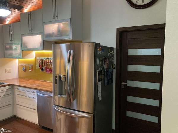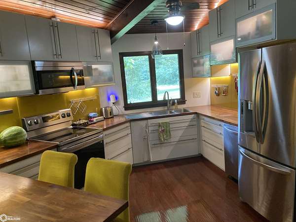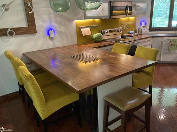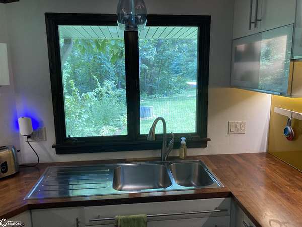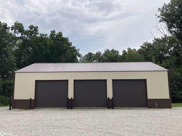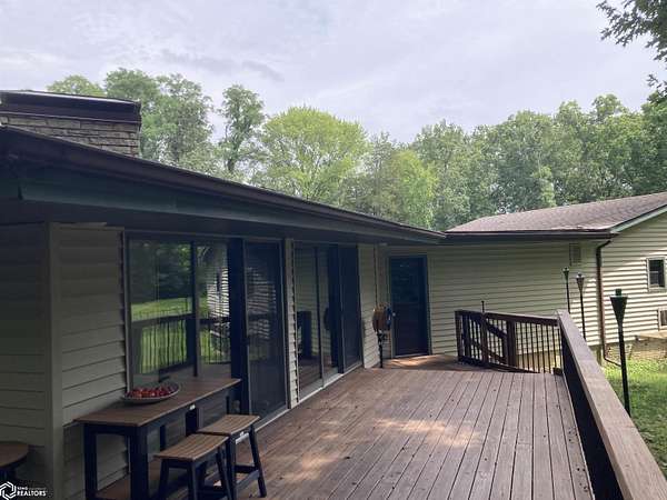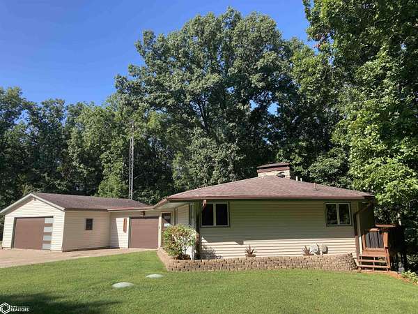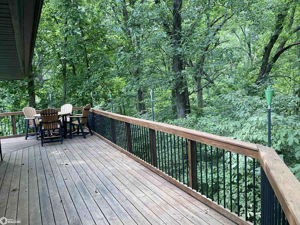 Imagine cozy evenings by the Anamosa Dolomite Limestone floor to ceiling gas fireplace centered in the expansive living room with vaulted ceilings and floor to ceiling windows. Interior of this midcentury contemporary ranch has been totally renovated on the main level and walkout finished basement. Approximately 1,869 finished square footage. Wooded setting of 4.77 acres more/or less with 2.76 acres in forest reserve. Newly constructed 40x50 foot workshop with concrete floor and 10 foot doors serviced by expansive gravel driveway. 3 car attached garage with 976 square feet, Very spacious walk in closets in both bedrooms and additional storage throughout. Additional 200+ square feet storage/utility room in basement. Entertain on the 614 square feet wooded wraparound deck located on the back of the home overlooking the wooded area. Home features 2 large bedrooms and 2 full baths with heated towel racks. Main level bathroom has surround bathtub/shower. Basement bathroom has surround shower. Main level laundry with cabinets and shelves for organization and storage. Walkout basement family room, both bathrooms and bedrooms have infrared heating panels in the ceiling for supplemental heating. Walkout basement has hanging wood swing bed over 243 square foot sealed concrete patio. There are metal panels under the wooded deck to shed water away from the concrete patio. Very unique property.