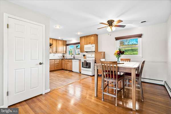 Welcome to this well-maintained ranch-style home set on 1.56 acres across two peaceful parcels, where everyday living feels a little more open, a little more private, and a lot more relaxed. Inside, the main level features hardwood floors and an updated kitchen with 42" cabinets, tile backsplash, Silestone countertops, and white appliances-a bright, cheerful space that feels instantly welcoming. The updated main-level full bath with stone counters adds comfort and ease to daily living. The main level offers 3 bedrooms, 1 full bath, and 1 half bath, along with multiple living and gathering areas-spaces that hold memories and are ready for new ones. The finished lower level expands the possibilities with a spacious rec room, an additional flex room, and a second full bath, creating the perfect setting for hobbies, guests, or quiet retreats. Step outside to open acreage and wide skies, complete with a large raised garden, shed, and storage barn-a perfect setup for anyone who loves growing, building, tinkering, or simply enjoying the land. Thoughtfully updated and offering room to breathe both inside and out, this property has a warmth that's felt the moment you arrive-and it's ready to welcome its next owners home.
