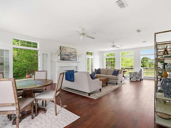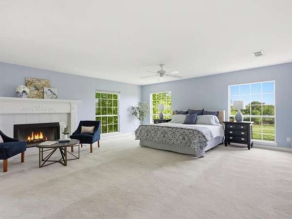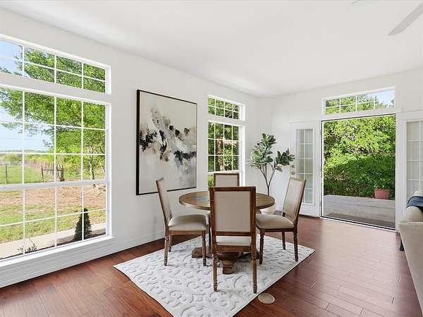 Situated on expansive acreage in sought-after Aledo, this estate property offers a rare blend of space, functionality, and timeless character with convenient access via Old Weatherford Road. Inspired by the classic proportions and enduring principles of traditional country house design, the home reflects a sense of balance, symmetry, and understated elegance rarely found in newer construction. The stately main residence is defined by grand-scale living, soaring ceilings, and abundant natural light, with multiple living and dining areas designed for both everyday comfort and entertaining. Walls of windows frame sweeping views of the surrounding land, reinforcing the home’s connection to its natural setting. Thoughtful architectural elements throughout—including four fireplaces—add warmth and character across the home’s expansive footprint. In addition to the main living areas, three oversized rooms provide flexibility for media, game, office, or multi-generational living. The kitchen features a walk-in pantry and a window overlooking the acreage, bringing in natural light and peaceful views. Throughout the home, expansive windows capture green views from nearly every room, creating a bright, inviting atmosphere. The primary suite offers a true retreat with its own fireplace, spacious bath, and serene views of the property. Outdoors, the property comes to life with a pool ideal for relaxing or entertaining, while mature oak trees and open pasture frame the Texas landscape. Designed with equestrian use in mind, the well-equipped 6-stall horse barn includes a tack room and dedicated wash rack. A barn apartment adds flexibility for guests, staff, or extended stay use. Whether you're seeking a full-time residence, weekend retreat, or legacy property, this estate presents a rare opportunity to own a thoughtfully designed home on acreage in Parker County where architectural inspiration meets the freedom of country living with everyday accessibility.