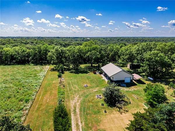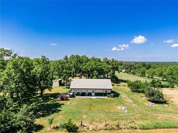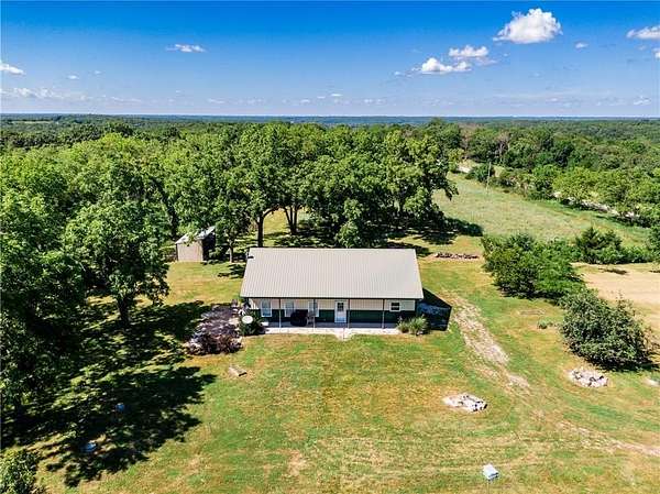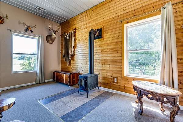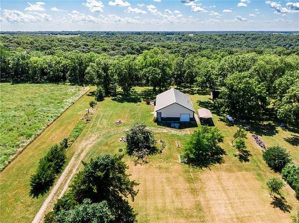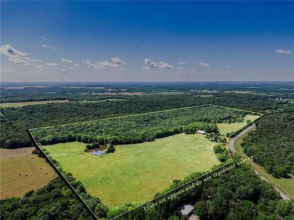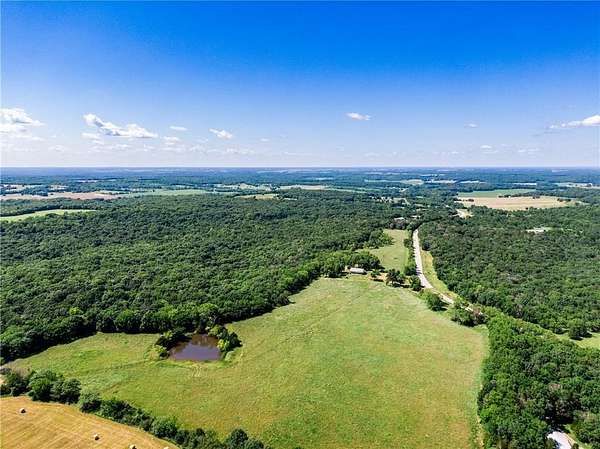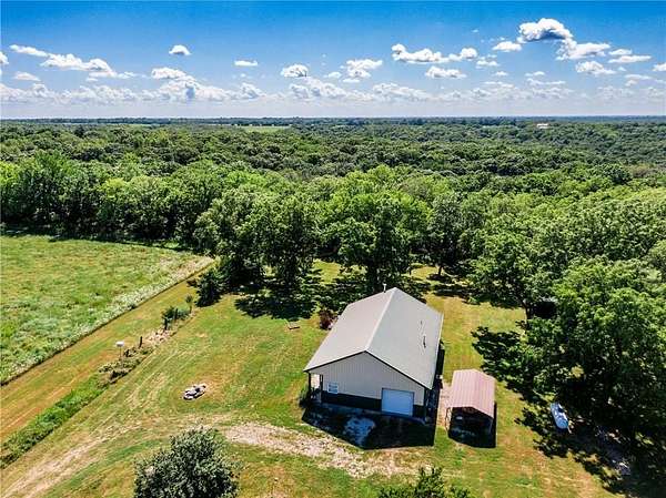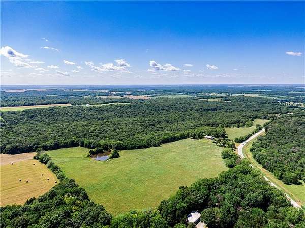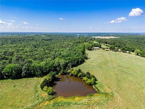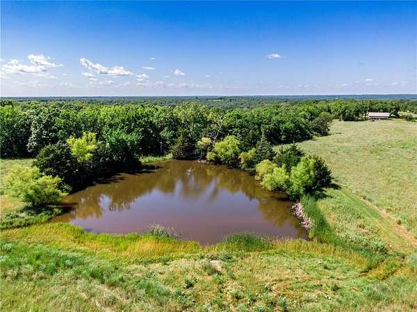 Discover 62.9 acres m/l of prime mixed-use land just north of Mound City. This versatile farm offers the perfect blend of native hardwood timber and native grasses, ideal for recreation or livestock. Native grasses along the east side and hardwood timber on the west offer a big feel to the property. Mowed trails around the property provide easy access. A well-built 1,500 sq ft building (with 1,192 sq ft of finished living space) constructed in 2009 provides comfortable accommodations or the perfect weekend getaway. The property features a large, stocked pond for fishing, wildlife and livestock, along with a productive fruit orchard and mature shade trees that enhance the peaceful setting. Located in a big buck area and an abundance of eastern turkey make this property the perfect recreational tract. Enjoy the convenience of rural water, direct highway frontage, and a well-maintained landscape ready for your next chapter. Tractor and mower will be included in the sale.