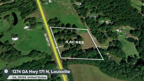 Est $751/moEndless possibilities await at 1274 Hwy 171 in Louisville, GA! This 4-acre property is already equipped with power, water, septic, and a deep well, giving you a head start on your next project. Whether you're planning to build your dream home, start a homestead, or develop the land, this property is ready to go. The 22x30 metal building with electricity offers excellent space for storage, a workshop, or future expansion. With flat, fully usable land, it's ideal for farming, livestock, or residential development. Enjoy the peace of country living with the convenience of being just minutes from town.