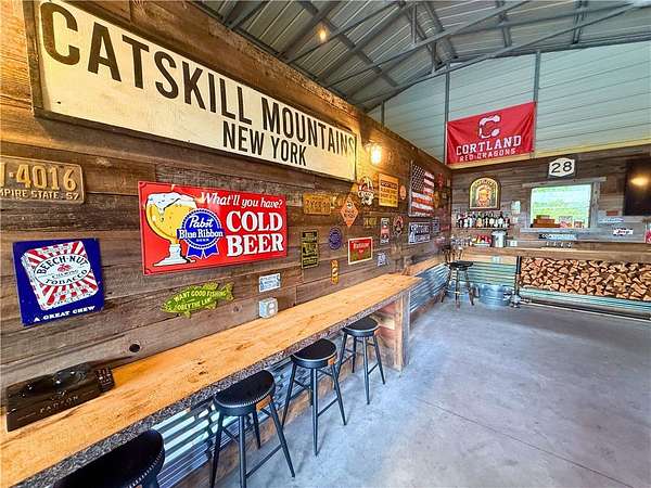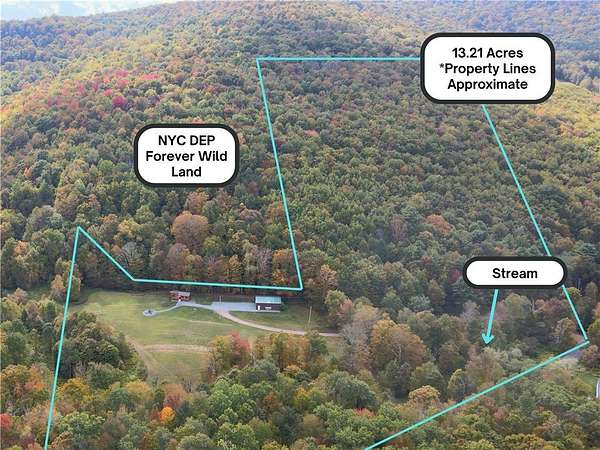BEST AND FINAL OFFERS DUE FRIDAY, 10/10 AT 9PM! Behold the the good life - Andes Lion's Perch Camp has arrived! Infrastructure in place with a well, electric, and 2 year old DEP approved septic system designed for a 2-3 bedroom house. New bridge over stream and driveway improvements - this lot is ready to build, just bring your design plans! Tiny Cabin available to be sold separately, but must meet certain zoning requirements. Need some space to hang out while you make your plans? The pole barn is the perfect hang out - one side accommodates storage for vehicles, ATVs, and tools; the other side has been finished as a lounge with a wood-burning stove, insulated walls clad in vintage barn wood and a bar area. The garage doors open for indoor-outdoor living or can be closed to create a cozy four-season den. Then there's the land...over 13 acres bordering 36 acres of NYC DEP "forever wild land" and a long newly finished driveway takes you up the hill and drops you off at your hilltop escape. Take your quad or snowmobile up the hill or just enjoy the peace and quiet. A beautiful stream meanders the length of the bottom of the property - hang out down there and watch the ducks or skip some stones or take a dip to cool off on those hot days. The high end custom fire pit area is perfect for those nights when you just want to sit by a campfire and gaze at the mountain ridges in the distance. Conveniently located half way between Andes and Margaretville, just 15 minutes from Belleayre skiing, and less than 2.5 hours from the GW Bridge - it's time to take the plunge and see what The Catskills are all about because this property is the quintessential getaway. YOUR CATSKILL DREAM AWAITS!