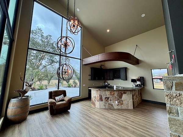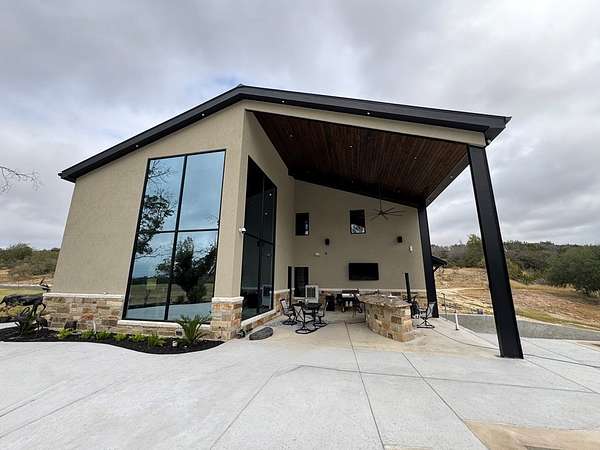 Nestled just beyond the city limits of Kerrville, this sprawling 138-acre ranch is a unique blend of historic charm and modern luxury. The property boasts a newly constructed, state-of-the-art luxury steel-frame home that exudes contemporary elegance and functionality. There is a large outdoor entertainment area, with a double negative edge pool, overlooking a lake. Perfectly complementing this modern residence are two additional homes steeped in history. One is a large, character-filled home expanded from an original historic rock cabin, brimming with potential for a remarkable restoration. The second is an older home with endless opportunities to be transformed back to its former glory. A truly captivating feature of this ranch is the spring-fed Third Creek, which winds gracefully through the property. This year-round water source not only adds to the serene beauty of the land but also serves as a natural division, creating two expansive grass pastures ideal for grazing livestock and horses. With its fertile soil and abundant water supply, the ranch is well-suited for agricultural pursuits, equestrian enthusiasts, or would make a great residential development or an outstanding w