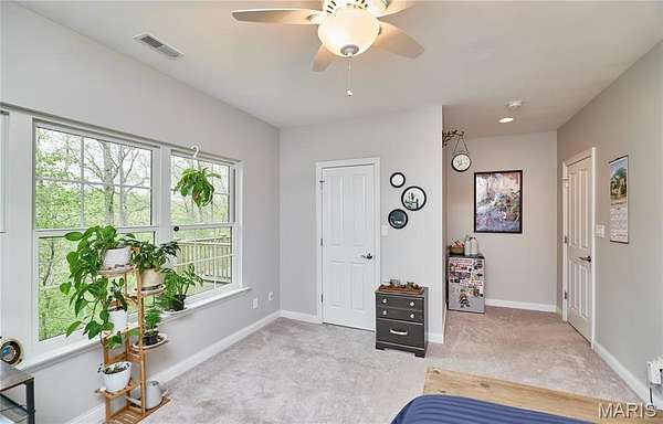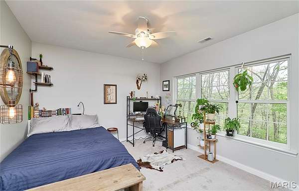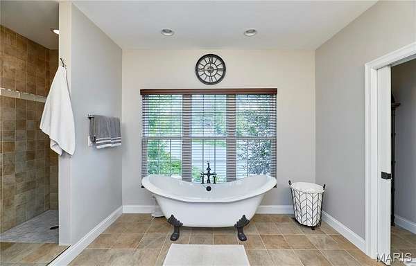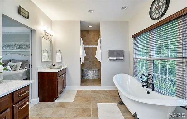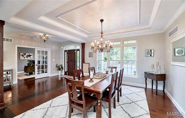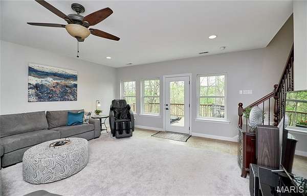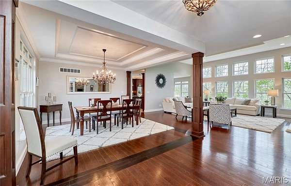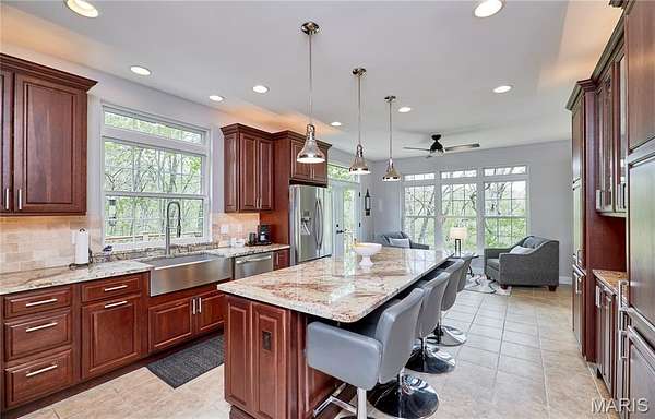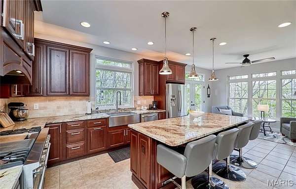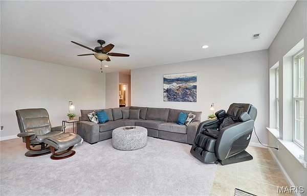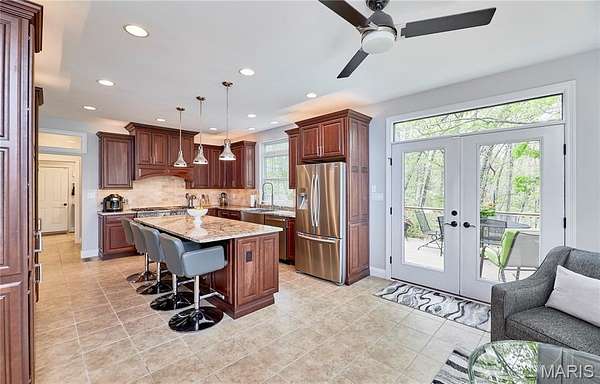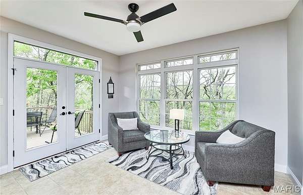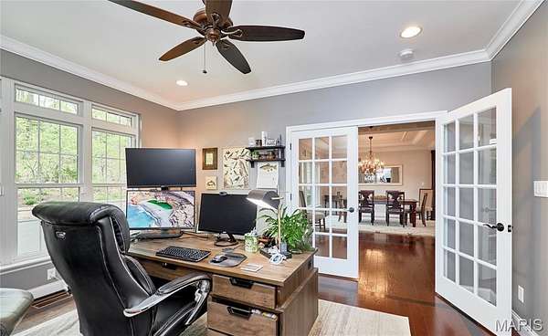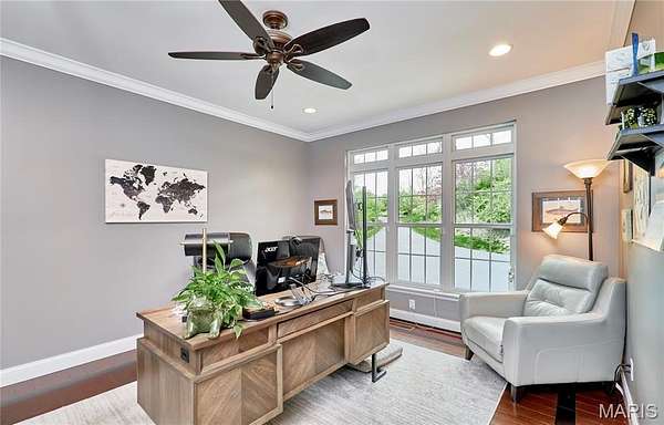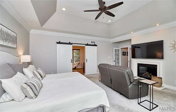 Exceptional custom ranch on a private 2-acre lot, ideally positioned within a gated enclave overlooking Paradise Valley Golf Course. An impressive stone exterior and welcoming covered porch set the tone for this thoughtfully designed home. Rich wood flooring extends through the entry foyer, office/den, formal dining room, and great room. The foyer is flanked by a private office with French doors and an elegant dining room accented by a tray ceiling. The great room impresses with a dramatic wall of windows, a soaring 12-foot tray ceiling with custom lighting, hardwood floors, and a striking stone fireplace, offered as a decorative-only element. The gourmet kitchen is designed for both everyday living and effortless entertaining, anchored by a professional-grade Viking stainless steel gas range with double ovens, commercial-style burners, and an integrated griddle. Custom cabinetry, granite countertops, and an expansive center island with breakfast bar seating are complemented by a built-in drawer microwave with child-lock feature. A light-filled sitting room with French doors opens to the large side deck—creating seamless indoor-outdoor living with scenic views. The stunning main-level primary suite overlooks a private, wooded backdrop and is enhanced by crown molding, a deep tray ceiling, and a cozy fireplace. A spacious walk-in closet adds to the suite’s appeal. The spa-inspired primary bath offers a freestanding soaking tub, dual vanities, and a custom walk-in shower with two separate shower spaces connected by a distinctive half-moon bench. A large window fills the space with natural light, while a separate water closet enhances the sense of privacy and retreat. The spacious main-level laundry room is well-appointed with abundant cabinetry, generous countertop space, and a utility sink, providing everyday convenience and functionality. The finished lower level offers a spacious family room, a full bath, and four additional bedrooms, one of which is currently utilized as a home gym. Multiple lower-level bedrooms feature walk-in closets, and one includes a private en-suite full bath. The family room provides direct access to the back deck, complete with new outdoor lights (2026) and new hot tub (2020), creating an ideal setting for relaxation or entertaining. Additional highlights include an irrigation system and newly updated landscaping completed in 2026.