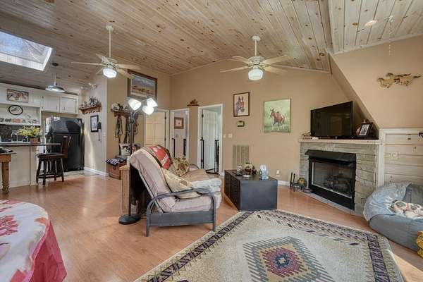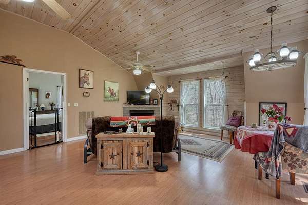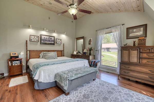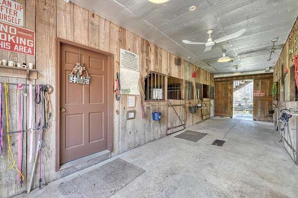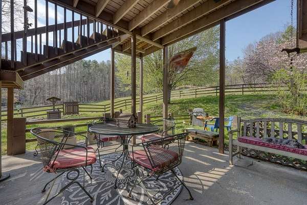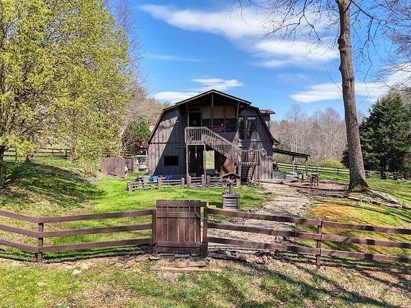 Escape to your very own private oasis with this beautiful horse farm offering nearly 5 acres of lush pasture land, a trout-filled creek, and a serene neighborhood fishing pond. The property features 2 well-maintained barns, providing space for horses (4 stalls), equipment, and storage. Above one of the barns, you'll find a cozy living space that offers the perfect blend of comfort and rustic charm. This apartment-style unit includes 2 bedrooms, a full bathroom, and a spacious living area, complete with cathedral ceilings that make the space feel open and airy. Enjoy peaceful mornings and evenings on the screened-in porch, which offers views of the beauty around. The sitting area by the creek provides a tranquil spot to relax and take in the surroundings. The fishing pond located a short walk up the road invites you to cast a line and enjoy quiet days by the water. Pond is for neighborhood residents.