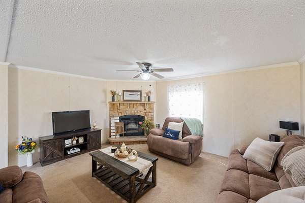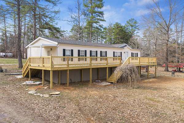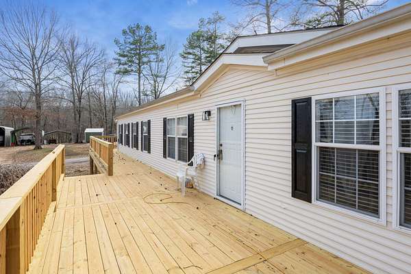 Enjoy river living on 2± acres near the Tennessee River! This well-maintained 3 bedroom, 2 bathroom modular home offers space, comfort, and direct water access — the perfect setup for weekend getaways or full-time living. Inside, you'll find a spacious open floor plan featuring an eat-in kitchen with island, coffee bar, and an oversized living area ideal for gathering family and friends. The home is move-in ready, and all appliances convey with the sale. Step outside to a brand-new, oversized deck overlooking the neighborhood — perfect for relaxing spring evenings and summer nights. With a little over 2 acres, there's plenty of room to store boats, campers, and all your river toys. Two carports and a storage shed provide ample parking and storage space. The property backs up to a permanently connected backwater channel off the main river, offering direct water access right from your backyard. A nearby boat slip is just a short walk away, making time on the water effortless. If you're looking for a peaceful retreat with room to spread out and easy access to the Tennessee River, this one checks the boxes.
