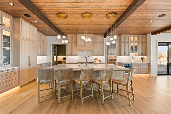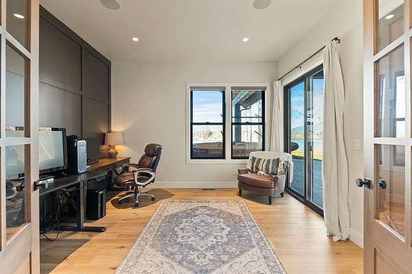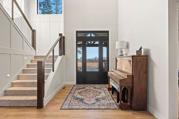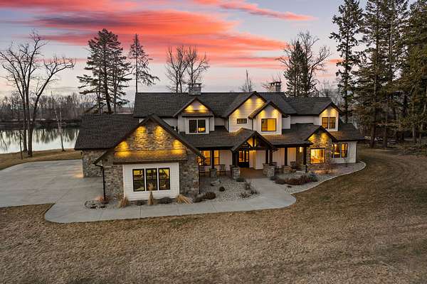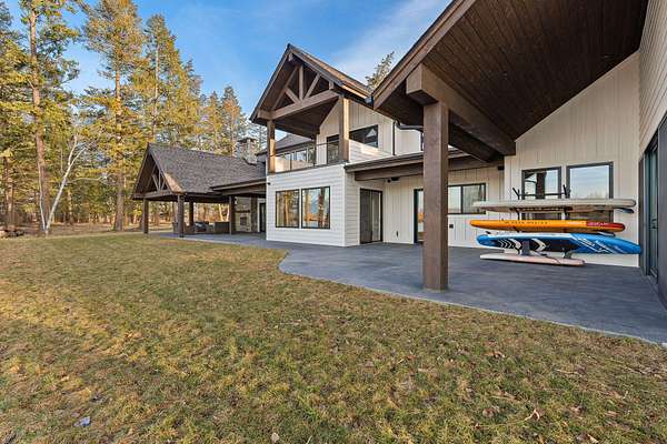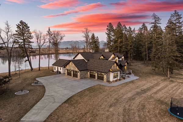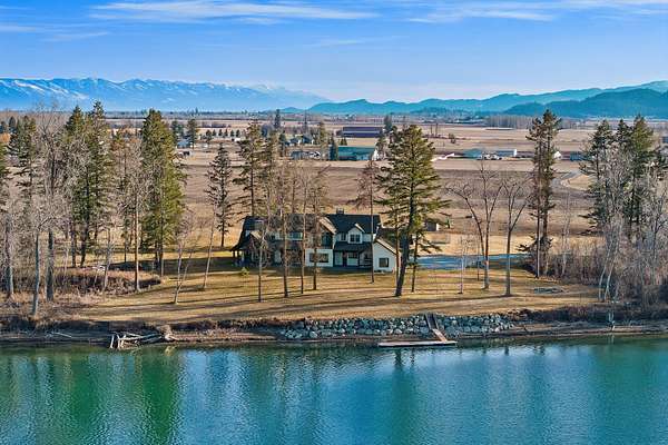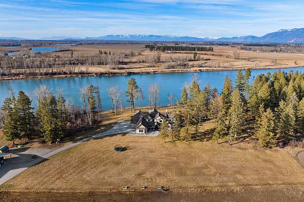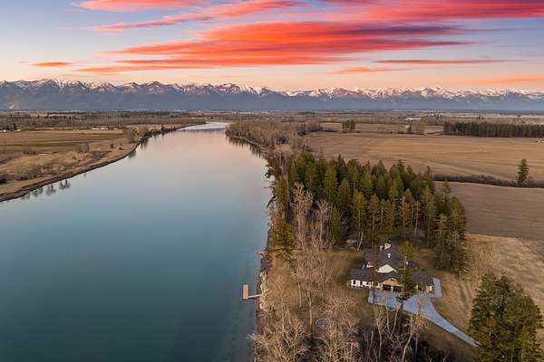 Experience the zenith of Montana's modern legacy living in this 2024 equestrian estate, commanding 23.84 pristine acres within the Flathead Valley. This property offers a rare trifecta of luxury: over 717+ feet of navigable Flathead River frontage and a private boat dock providing an elite deep-water gateway to Flathead Lake. Situated directly across from a protected Montana Fish, Wildlife & Parks conservatory, the home enjoys permanent, unobstructed vistas of the snow-capped Swan Mountain Range and a wild riparian landscape that will remain undeveloped forever. The main level serves as the heart of the home, anchored by a grand great room with a floor-to-ceiling dry-stack stone hearth and timber-truss vaulted ceilings. An epicurean kitchen features a quartzite island and a boutique butler's pantry, flowing into a primary sanctuary with a private morning bar and a boutique closet with dual islands. The first floor also includes a dedicated executive office/tech room and two of the five bedroom suites, each with a private ensuite bathroom. The home is wired for integrated sound and security, delivering modern convenience alongside its refined mountain design. The second floor expands the living quarters with three additional bedroom suites to ensure comfort for every guest. This level offers a versatile second living area with a private balcony overlooking the river and a convenient secondary laundry room to service the upper floor. Engineered for the serious equestrian or collector, the exterior infrastructure includes a premier 30x48 horse barn with oversized stalls and water service, along with elite metal pipe fencing securing the entire level acreage. Both pastures are equipped with power and water for efficient livestock management. Two buried 1,000-gallon propane tanks support the estate's operations. A fully finished, climate-controlled professional shop provides premium storage for automotive collections or marine fleets. This turn-key sanctuary represents a rare opportunity to acquire a new legacy estate where world-class ranch amenities meet unparalleled navigable waterfront access.