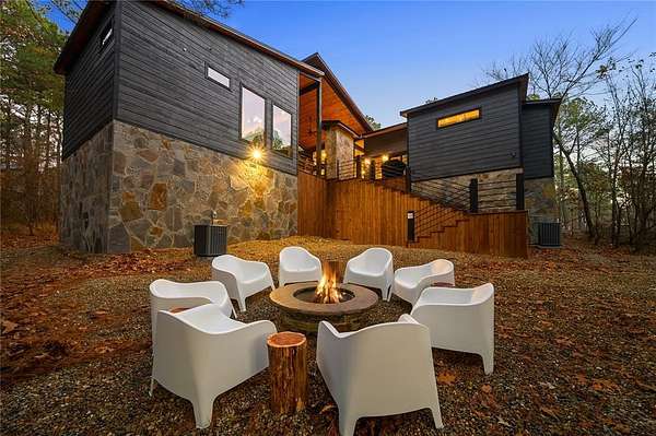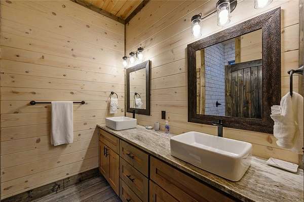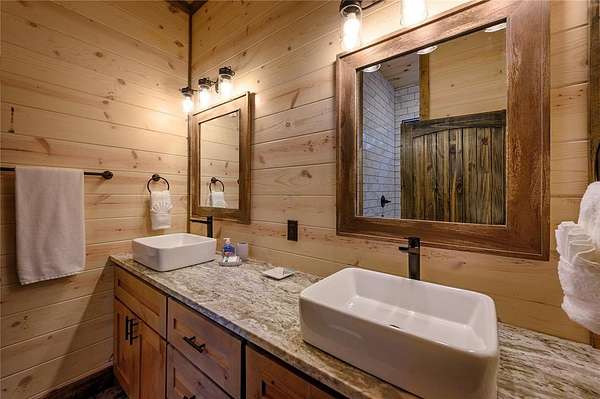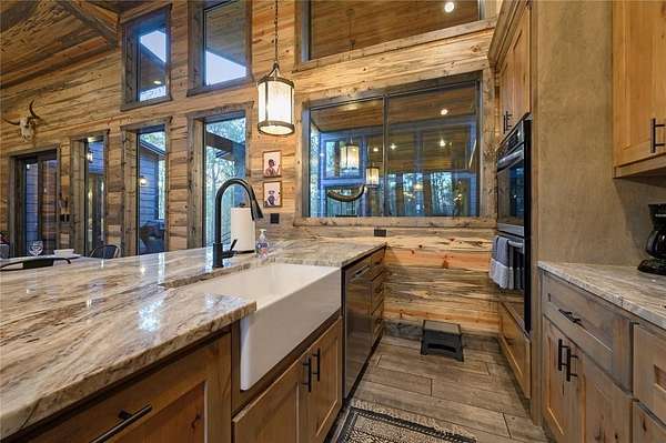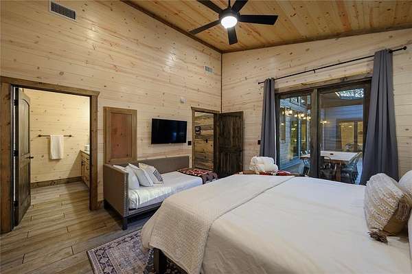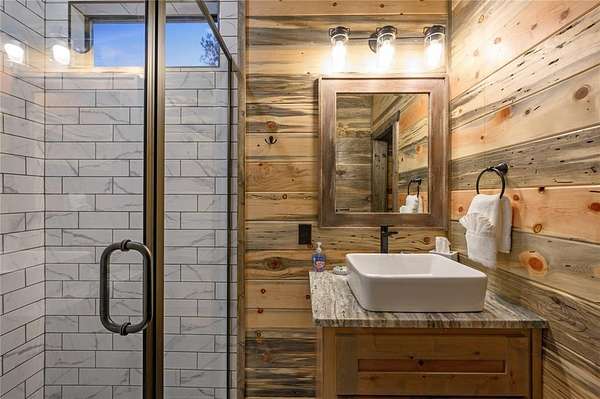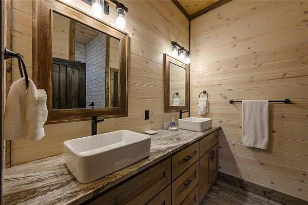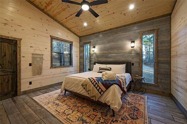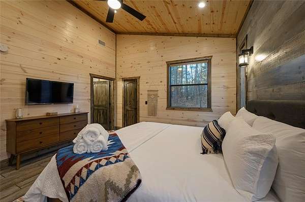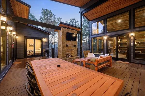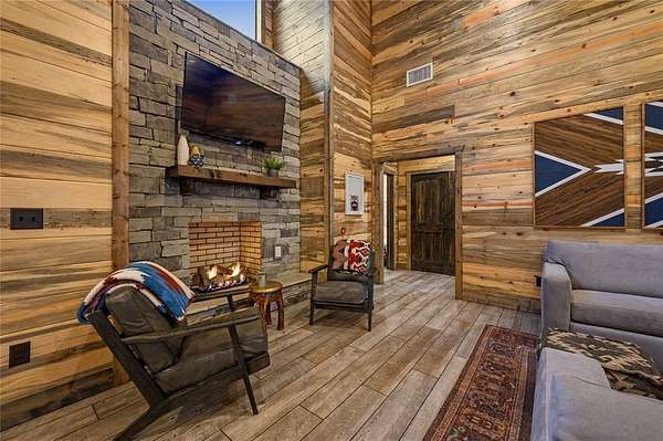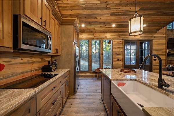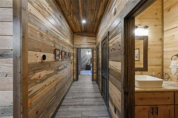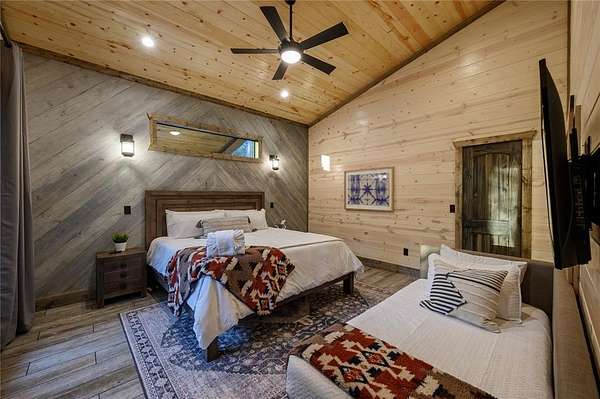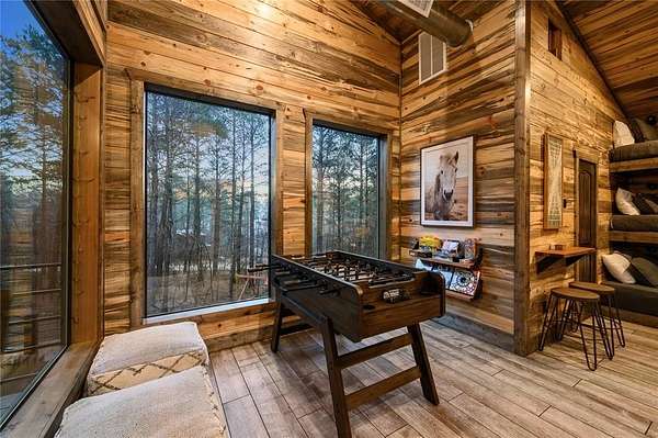 Hochatown Gem - Modern 1-Story 5 Bed / 5.5 bath cabin with detached bunk/game house! Welcome to #CabinLife, a rare and successful short term rental one-story luxury retreat designed for comfort, privacy, and entertainment. Sitting on a spacious 1.75-acre corner lot, this 3,000 SQ FT cabin with 500 SQ FT of covered patio space offers the perfect mix of indoor and outdoor living. The property provides ample parking for multiple vehicles, boats, or trailers. The main home features 4 large King Master Suites (each 15'x13' with ensuite baths). Two suites include twin daybeds for young children, while the others offer plenty of room for pack-n-plays. A 5th detached Game/Bunk House expands living space and excitement with a unique bunk setup (2 Queens + 4 Twin XLs), a full bath, 7-ft pool table, foosball, arcade game, smart TV, and lounge area-ideal for kids or multi-family gatherings. Inside, the open-concept living, dining, and kitchen area is perfect for entertaining. The living room features a cozy fireplace and 55" TV with seating for all, while the dining area offers a huge table for 10+ plus seating for 6 more at the granite kitchen island. The kitchen is fully equipped with stainless steel appliances, double oven, and ample space for cooking. A half bath is conveniently located off the main living area. Every bedroom, the living area, patio, and bunk house include Smart TVs with YouTube TV. Outdoors, enjoy the large covered patio with a fireplace, propane grill, dining for 10+, and a 6-person hot tub. Kids will love the private playset, while adults can gather for cornhole, horseshoes, or relaxing nights around the firepit. This property is designed to host up to 18 guests, making it perfect for large families, group getaways, or a premier short-term rental investment in Hochatown. #CabinLife is an incredible opportunity in one of Broken Bow's most desirable areas. TAKE A TOUR BY VIEWING THE WALKTHROUGH VIDEO. For a video link, contact the Listing Agent