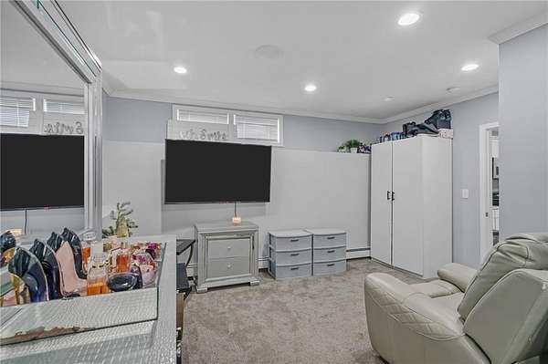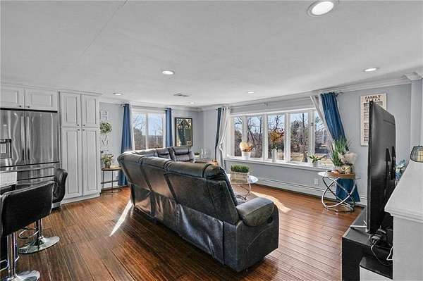 Stunning multi-generational raised ranch set on an ultra-private 1.85-acre lot, offering the perfect blend of luxury, comfort, and functionality. This spacious 3-4-bedrooms, 3 full bath home features a well-designed in-law setup ideal for extended family or guests. Enjoy a zero-clearance fireplace, a custom kitchen with high-end cabinetry, and elegant Carrara marble throughout the kitchen and baths. Thoughtful details include oversized closets, cedar closet in the basement, custom lighting, and Bluetooth-enabled speakers in the bathrooms for a spa-like experience. Step outside to your own private oasis featuring a no hassle Trex deck, in-ground pool, Full size basketball court, and expansive flat grounds perfect for entertaining or unwinding in total privacy. Additional highlights include a whole-house generator and beautifully landscaped surroundings. A truly rare opportunity offering luxury, space, and privacy in one of Cranston's most desirable settings, this is a home you won't want to miss. View the home from your phone 3D Tour enabled.