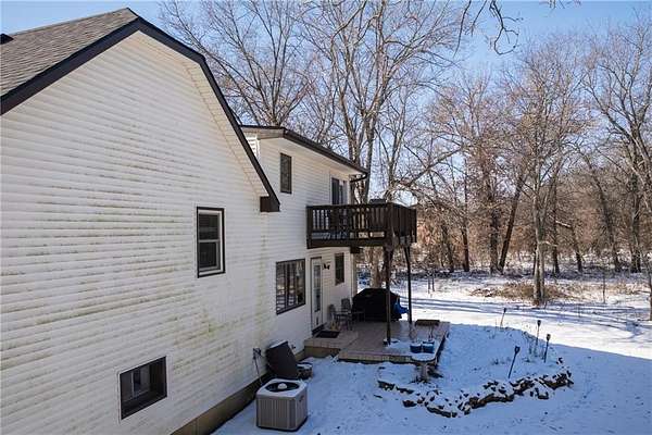 Enjoy peaceful country living on 15 wooded acres at 1275 SW 125th Rd in Holden, MO. This property offers the perfect blend of open space and wooded privacy, creating a secluded, serene setting surrounded by mature trees. The land features a pond, a barn, and wide-open areas ideal for recreation, livestock, or future expansion. Inside, the seller has updated the flooring throughout and completed numerous upgrades that add both comfort and long-term value. Upgrades include: new light fixtures, ceiling fans, switches, and outlets throughout; new baseboards; new front door; many new interior doors; new water heater (Aug 2025); new roof (May 2025); new gas furnace and A/C condenser (Oct 2020); and the outdoor waterfall/water feature restored (June 2023). Seller installed sump pump in 2024 and foundation work completed as well with cable/concrete piering along the east and north side of home with a lifetime warranty. The home offers a functional layout filled with natural light, including a top-floor primary suite with private balcony overlooking the property-a perfect retreat with peaceful views of the acreage and woods. With privacy, 15 acres, a pond, a barn, and major system updates, this property delivers the true Missouri country lifestyle. Schedule your private showing today - opportunities like this are rare. Contact agent to discuss financing assistance or loan options.