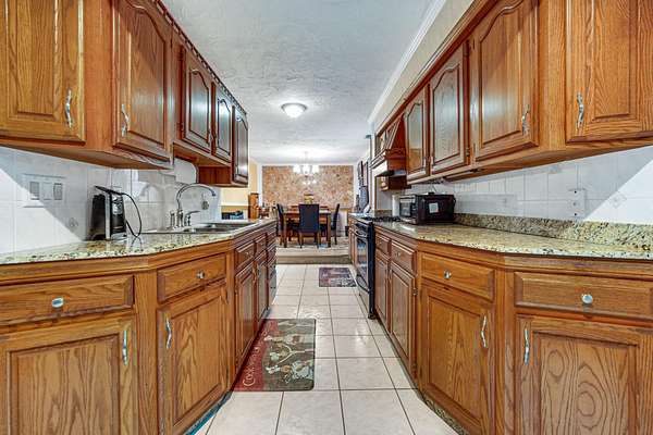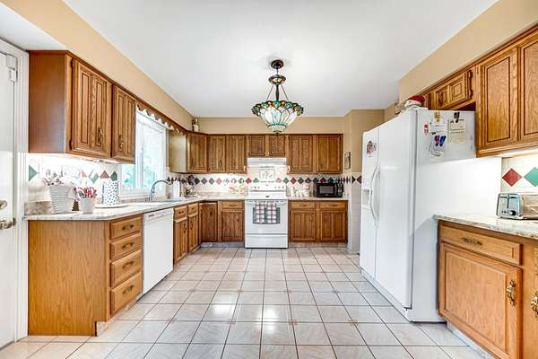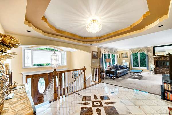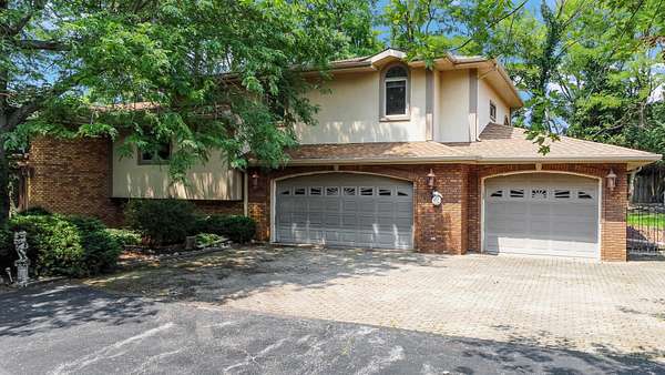 Spacious 3-Bedroom, 3-Bath Brick Tri-Level on 1.5 Acres with 3-Car Heated Garage! Welcome to this impressive 3,000 sq ft home nestled on a beautifully landscaped 1.5-acre lot with mature trees. Step into the elegant marble foyer featuring a grand double staircase that sets the tone for this unique and well-appointed property. The main level offers a bright and inviting living room with a wood-burning fireplace and an abundance of natural light. The kitchen features ample wood cabinetry, granite countertops, and included appliances, while the adjacent dining room leads to sliding patio doors that open to a spacious deck--perfect for outdoor gatherings. Two bedrooms and a full bath complete the main level. Upstairs, the private primary ensuite boasts a large bedroom with crown molding and a cozy double-sided gas fireplace. The luxurious master bath includes a jetted tub, double vanity, and standalone shower. The lower level is designed for entertaining with a generous great room, wood-burning marble fireplace, wet bar, and walk-out patio doors to the lower deck. This level also features a second full kitchen with granite countertops, a second dining area, a bonus room ideal for an office, and a full bath with a jetted tub and standalone shower. The utility area gives direct access to the laundry space and provides direct access to the heated 3-car garage with tiled floors and extra cabinet storage. The oversized driveway offers ample guest parking. Enjoy outdoor living on the oversized two-tier deck and relax in the enclosed gazebo--ideal for a peaceful evenings in the backyard.