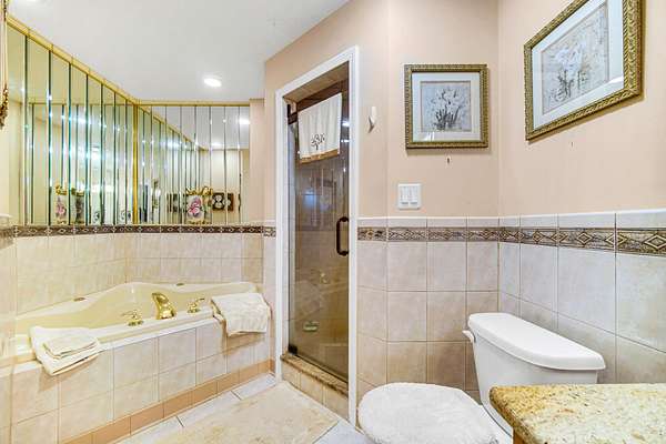 - Ceiling Fan(s), Double Vanity, Granite Counters, Wet Bar