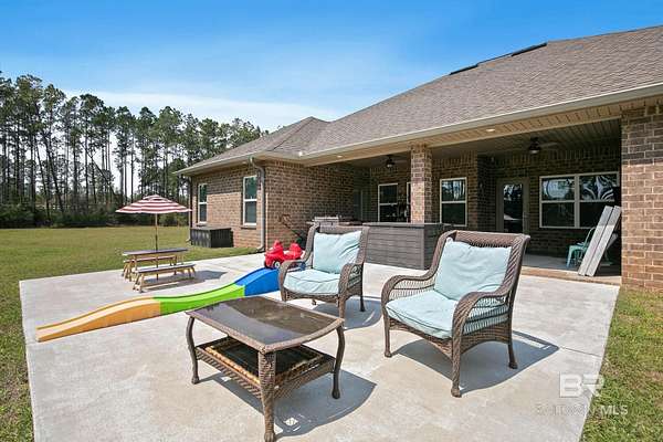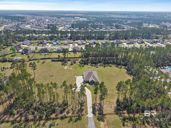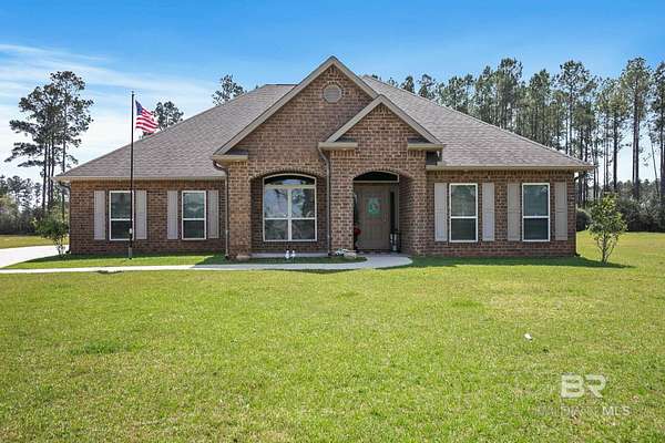 Welcome to your own private slice of country living in Spanish Fort. This beautifully maintained 5-bedroom, 3-bath Gold Fortified home sits on approximately 4.5 acres with no HOA, giving you the freedom and space to truly make it your own. Whether you’ve been dreaming of starting a homestead, building a shop, creating your own backyard oasis, or simply enjoying extra room to spread out, this property offers endless possibilities. Horses, goats, cows, pigs, chickens, and even that rooster you’ve always wanted are allowed here.Inside, the home offers a thoughtful and functional layout with space for both everyday living and entertaining. Just off the entry, you’ll find a formal dining room and a separate office, perfect for working from home or creating a flex space to fit your needs. The spacious primary suite is tucked away for privacy and features direct access to the back patio, a large ensuite bath with a separate tub and tiled shower, dual vanities, and a walk-in closet.Bedrooms two and three are located down one hall with a full bathroom, while bedrooms four and five are situated down another hall with an additional full bath, giving everyone their own space and making the layout ideal for families or guests.The kitchen is truly an entertainer’s dream with white cabinetry, stainless steel appliances, generous counter space, and a large walk-in pantry. A two-car garage adds convenience, while the long driveway and extended concrete provide plenty of parking for guests, boats, trailers, or recreational vehicles.Out back, the extended concrete patio opens up to wide open space and countless opportunities. There is room to build the workshop you’ve always wanted, add horse corrals, create a garden, install a pool, or design the backyard retreat of your dreams. If you’ve been looking for acreage, flexibility, and a home that offers both comfort and potential, this one is a must-see. Buyer to verify all information during due diligence.