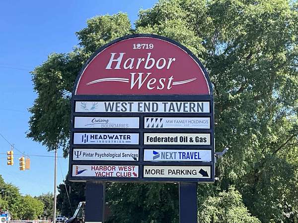 Take m22 north to light at Cherry Bend Road. Turn right and park in lower lot at Harbor West Yacht Club